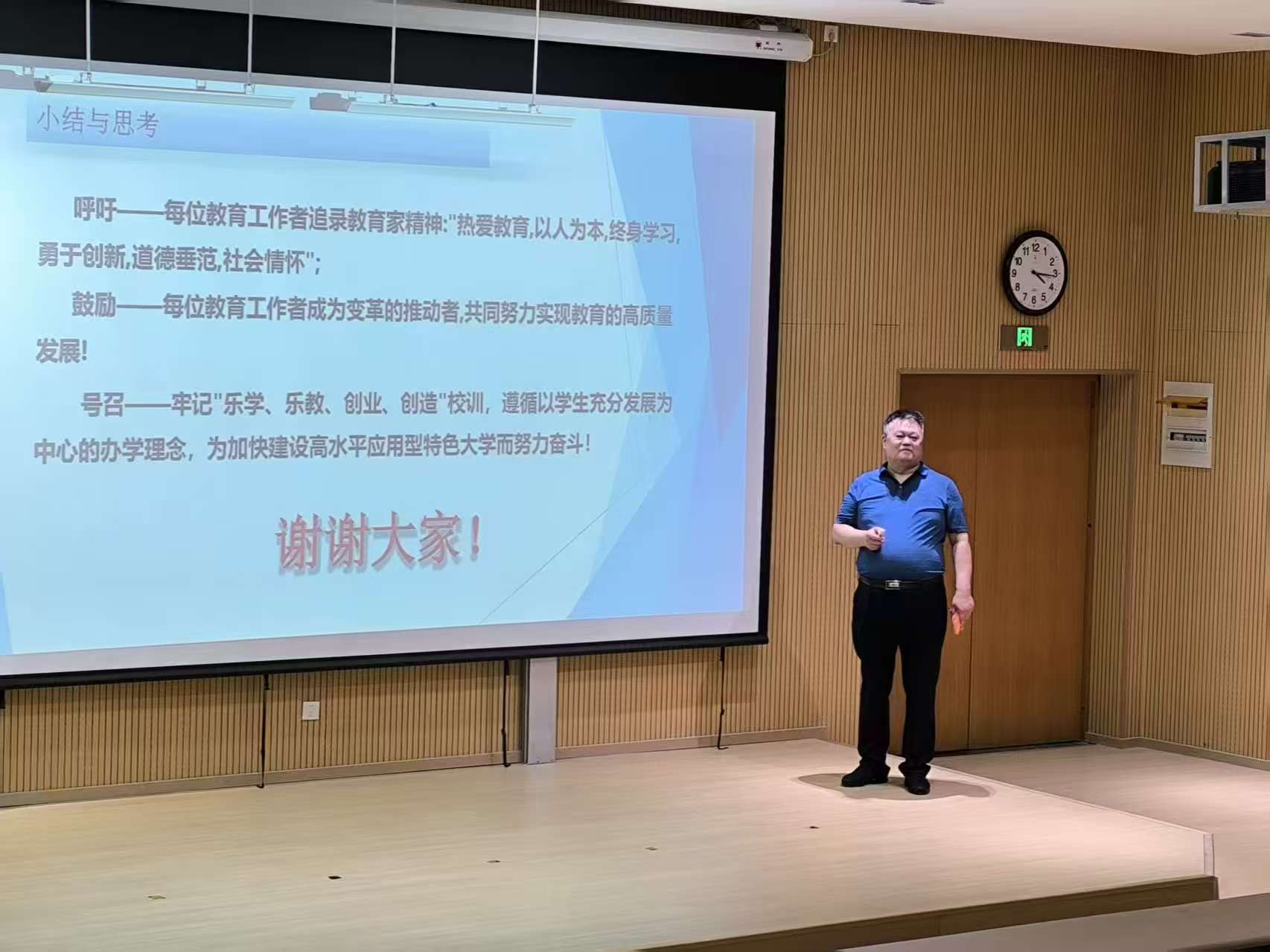 讲座尾声,范辉教授呼吁教育工作者坚守“教育以人为本、终身学习” 理念,携手为实现教育强国目标、建设高水平应用型特色大学奋进,引发全场共鸣。讲座结束后,参与教师们齐聚讲台前,与范辉合影留念,记录下这场收获满满的学习交流时刻。