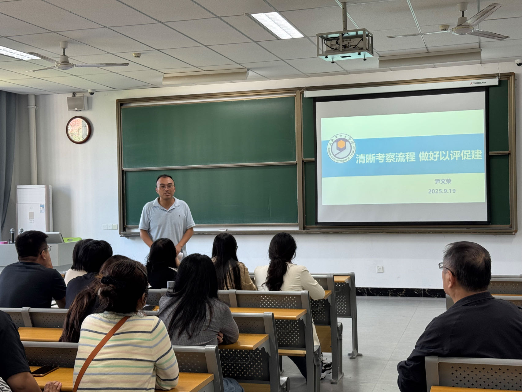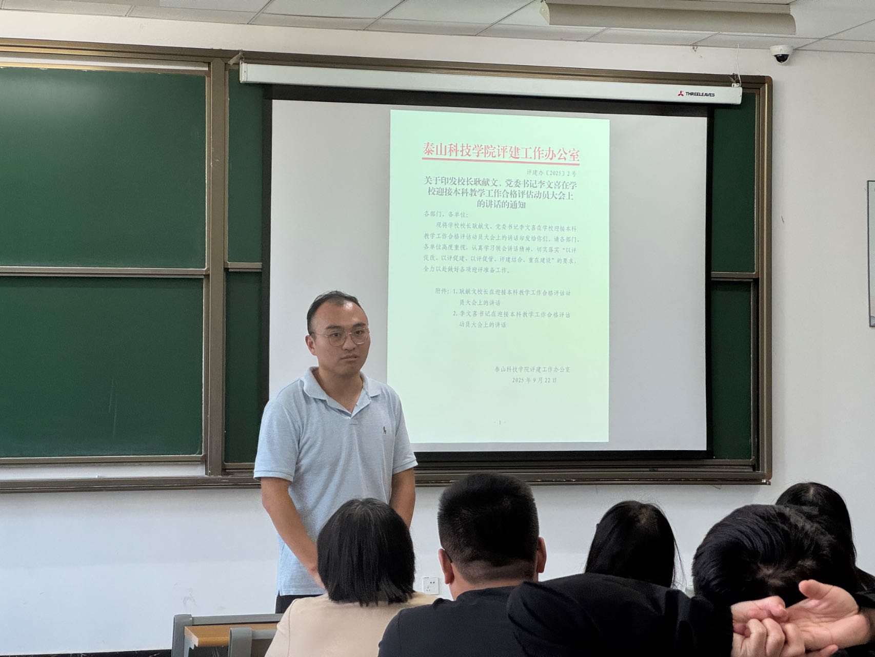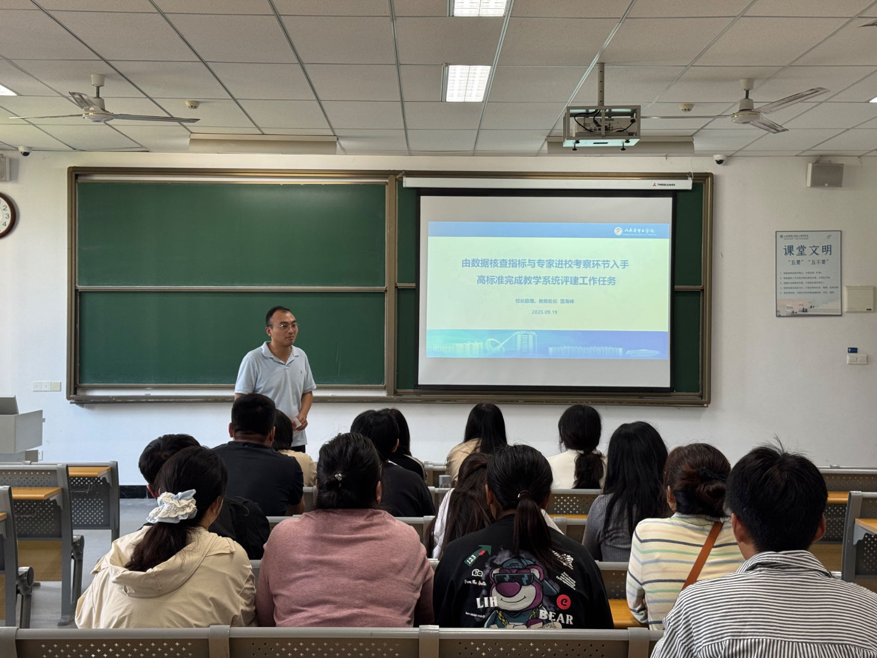 会议第二项重点为本科教学合格评估专题动员与学习。光永星老师传达了学校关于“清晰考察流程,做好以评促建”的整体要求,组织全体教师进一步学习相关讲话内容与会议精神。他对普通高等学校本科教学工作合格评估的考察程序、评建要点及其重要性进行了详细解读,强调要以评估为契机,全面检视、持续改进,推动教研室教学质量与管理水平整体提升。