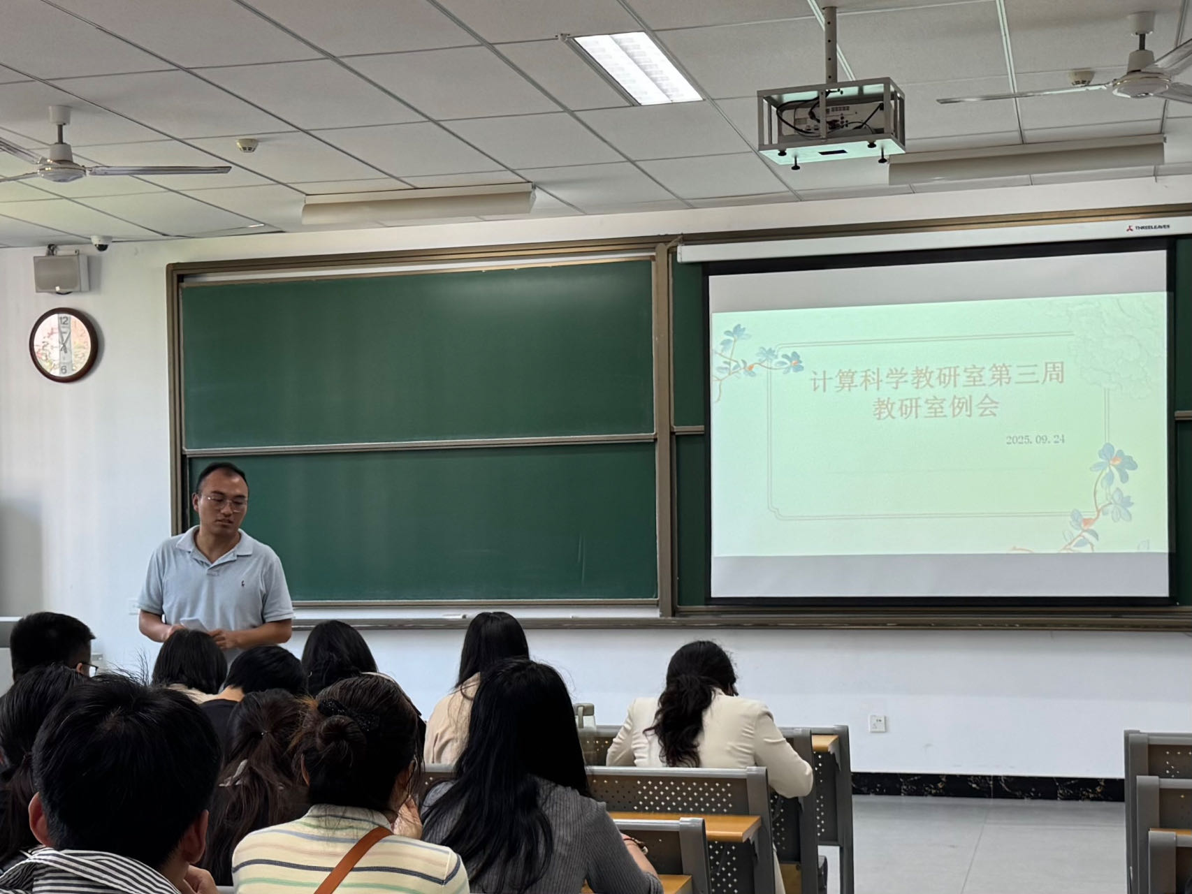 为持续推动教学教研工作精细化、规范化,2025年9月24日,计算科学教研室在J1-208教室顺利召开2025-2026学年第一学期第三次教研例会。本次会议围绕“日常教学夯实基础”与“合格评估以评促建”两大主线,系统部署了新学期各项重点任务,为后续工作的高质量开展明确了方向。会议由教研室负责人光永星老师主持。