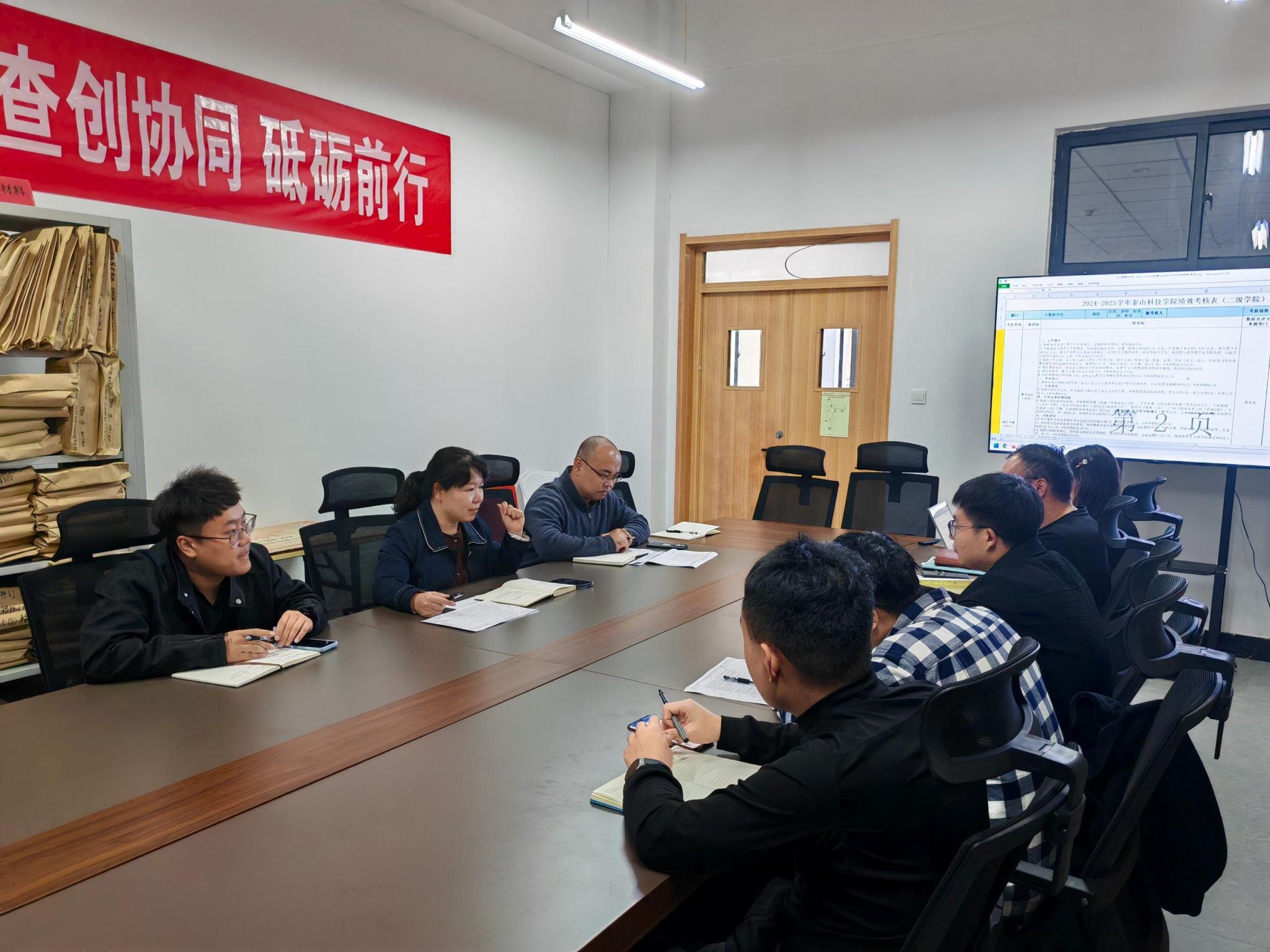 随后,会议聚焦目标考核与绩效考核工作。全体参会人员充分讨论上学年目标考核情况,系统梳理每位教师及学院整体的工作业绩,总结优势与不足。为进一步发挥绩效考核的激励作用,会议明确了下一阶段考核方向,将学科竞赛贡献、科研项目进展、培养方案优化参与度等纳入核心考核指标,推动教师主动投身学院教育教学高质量发展。