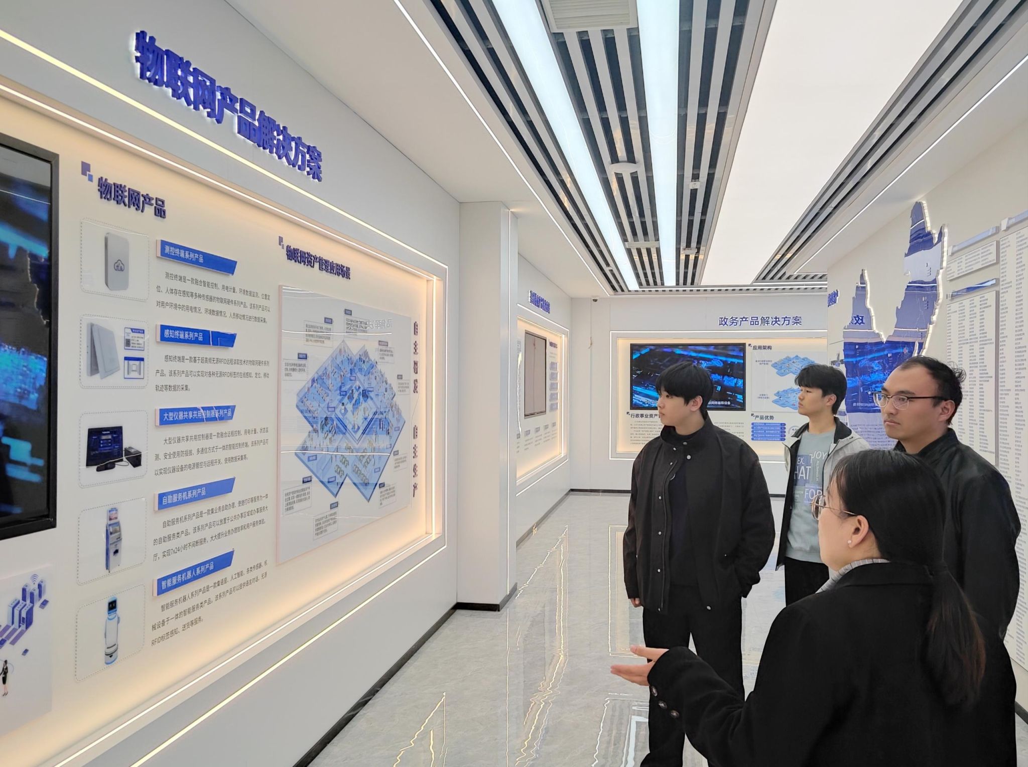 在山东国子软件股份有限公司人力资源部经理白冰及部门成员袁茹霞的带领下,师生一行先后参观了企业办公区域、技术研发中心及成果展示区。过程中,企业方详细介绍了公司发展历程、核心业务板块、现有客户群体分布情况,以及未来在技术研发与市场拓展方面的规划,让师生直观了解行业发展动态与企业运营模式。