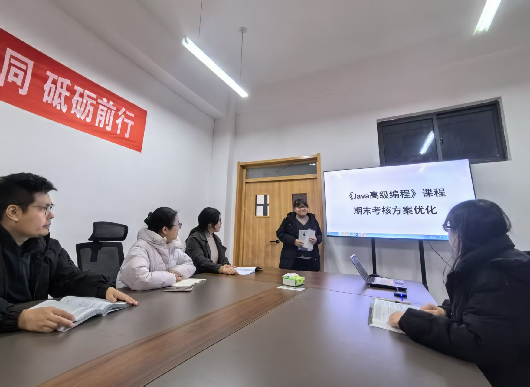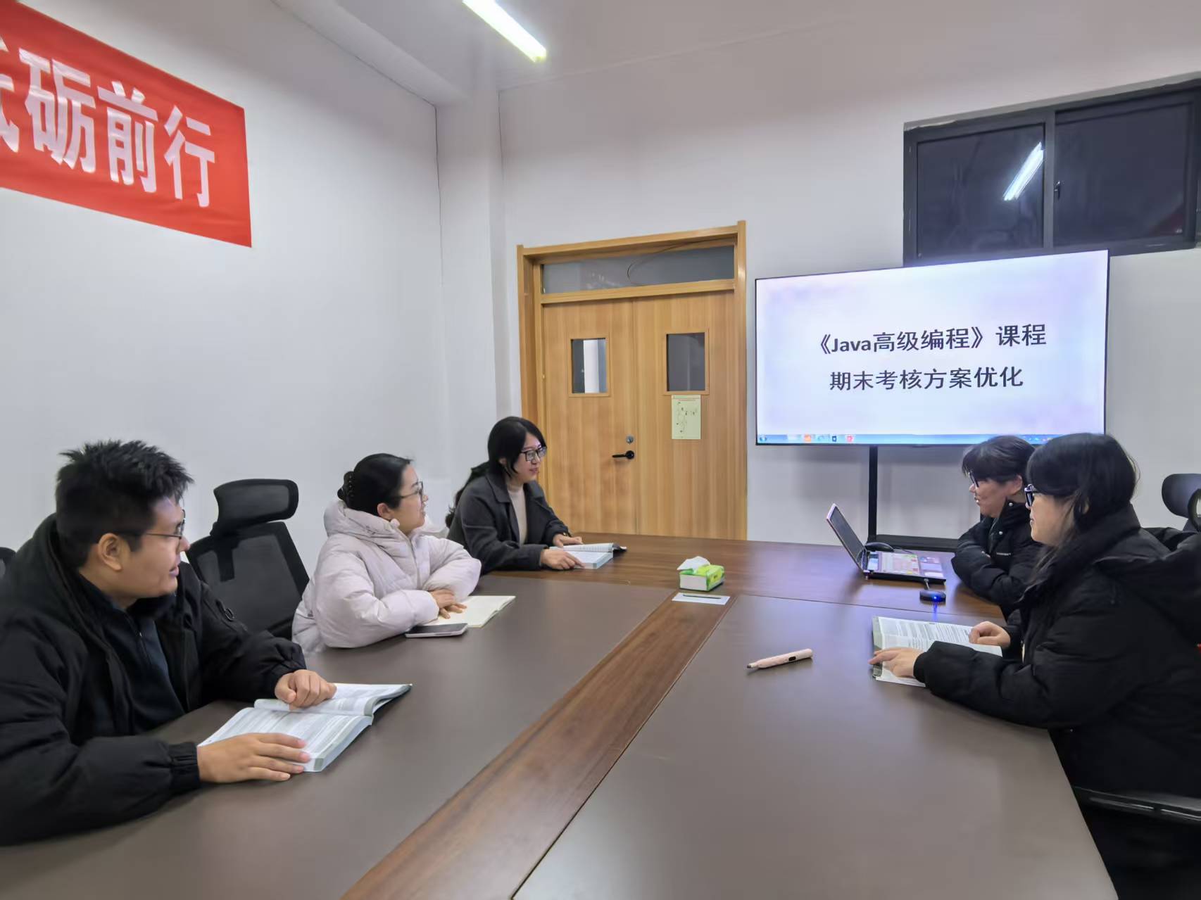 为加强一流课程建设,持续推进学校“教育教学三提三创”主题年活动,12月12日,大数据学院组织开展了《Java高级编程》课程期末考核方案的优化工作。此次优化聚焦于修改完善考核要求、设计报告模板以及制定评分标准等环节,由陈端君、魏方娜等教师组成课题组,共同推进此项工作。