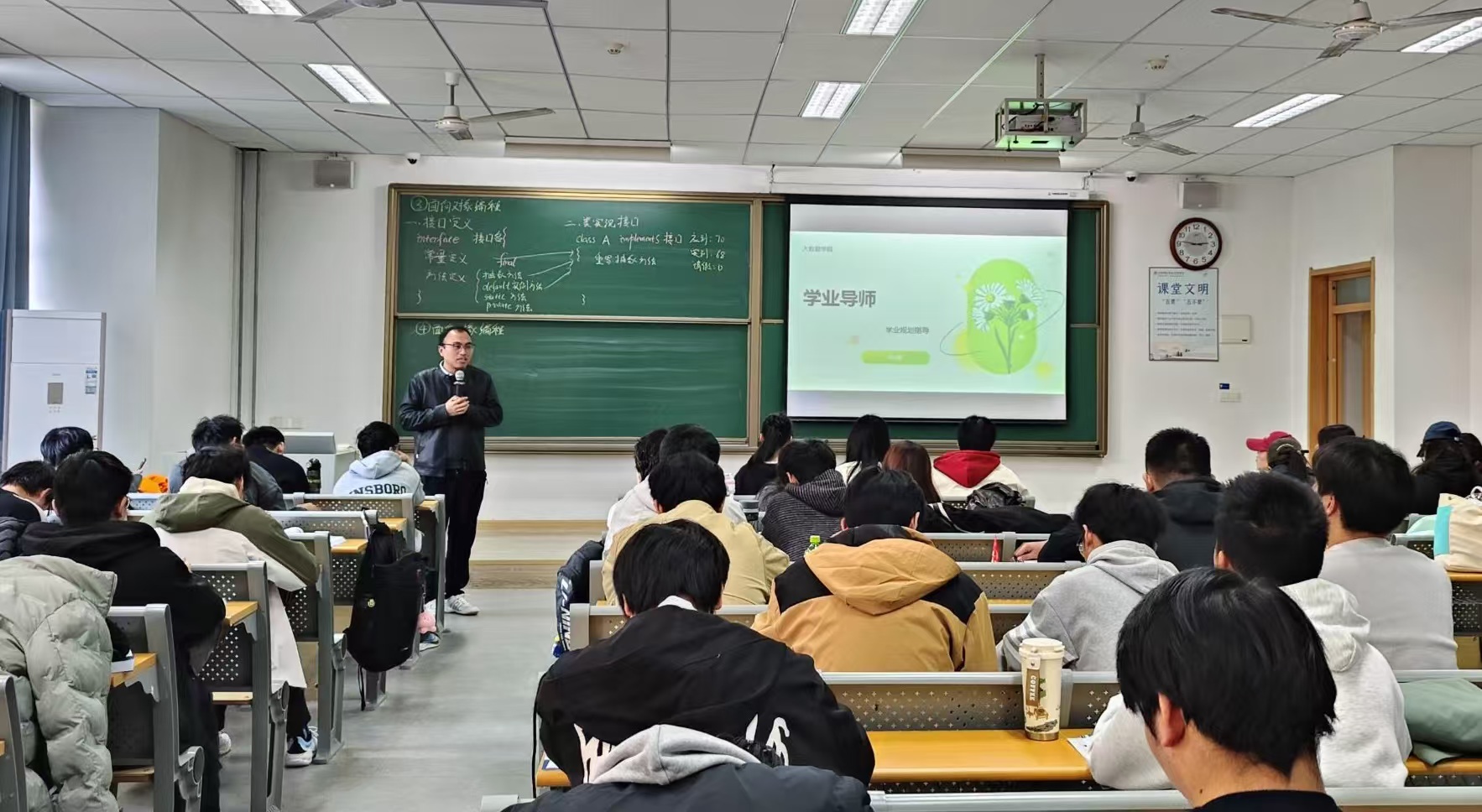 2025年11月4日,光永星老师在J1-306教室为计算机科学与技术(专升本)25-3班的全体同学开展了一场内容丰富、指导性强的学业导师专题活动。结合专升本学制紧凑、学业任务集中的特点,光老师围绕“夯实学业基础”、“明晰生涯方向”、“深耕竞赛实践”三大核心展开分享。