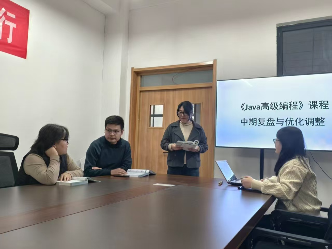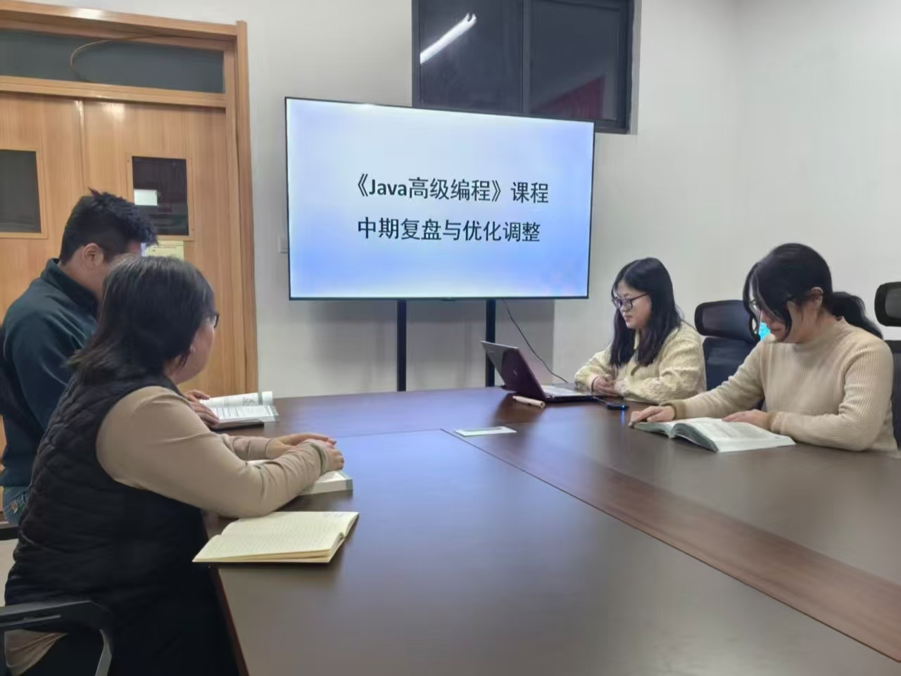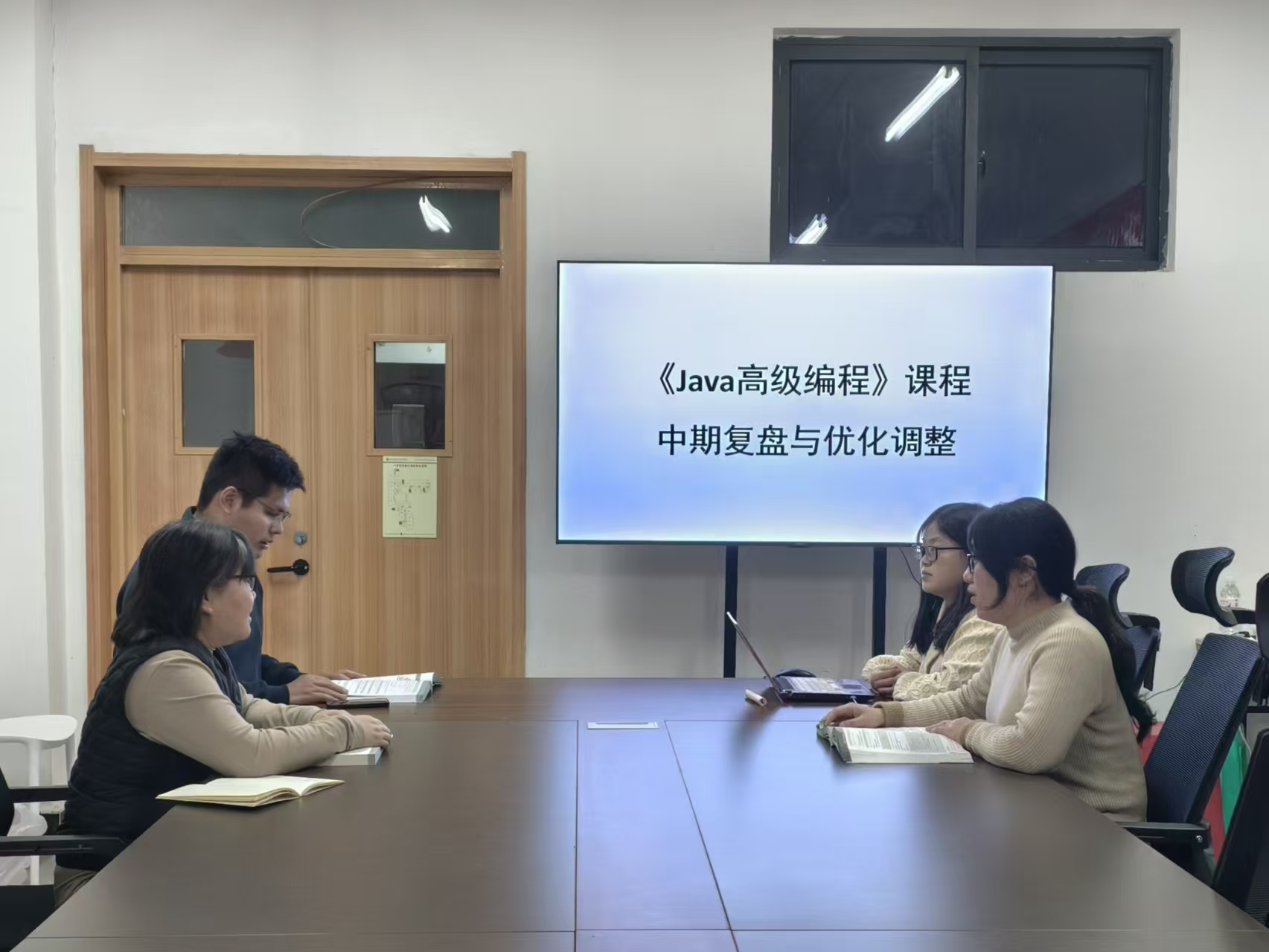 为精准适配学生学习需求,优化后续教学安排,11月14日,《Java高级编程》课程组开展中期复盘研讨会。课程负责人陈端君老师与授课教师团队参会,围绕教学进度、实践环节开展情况及特殊学情等核心问题,集中研讨教学优化方案。