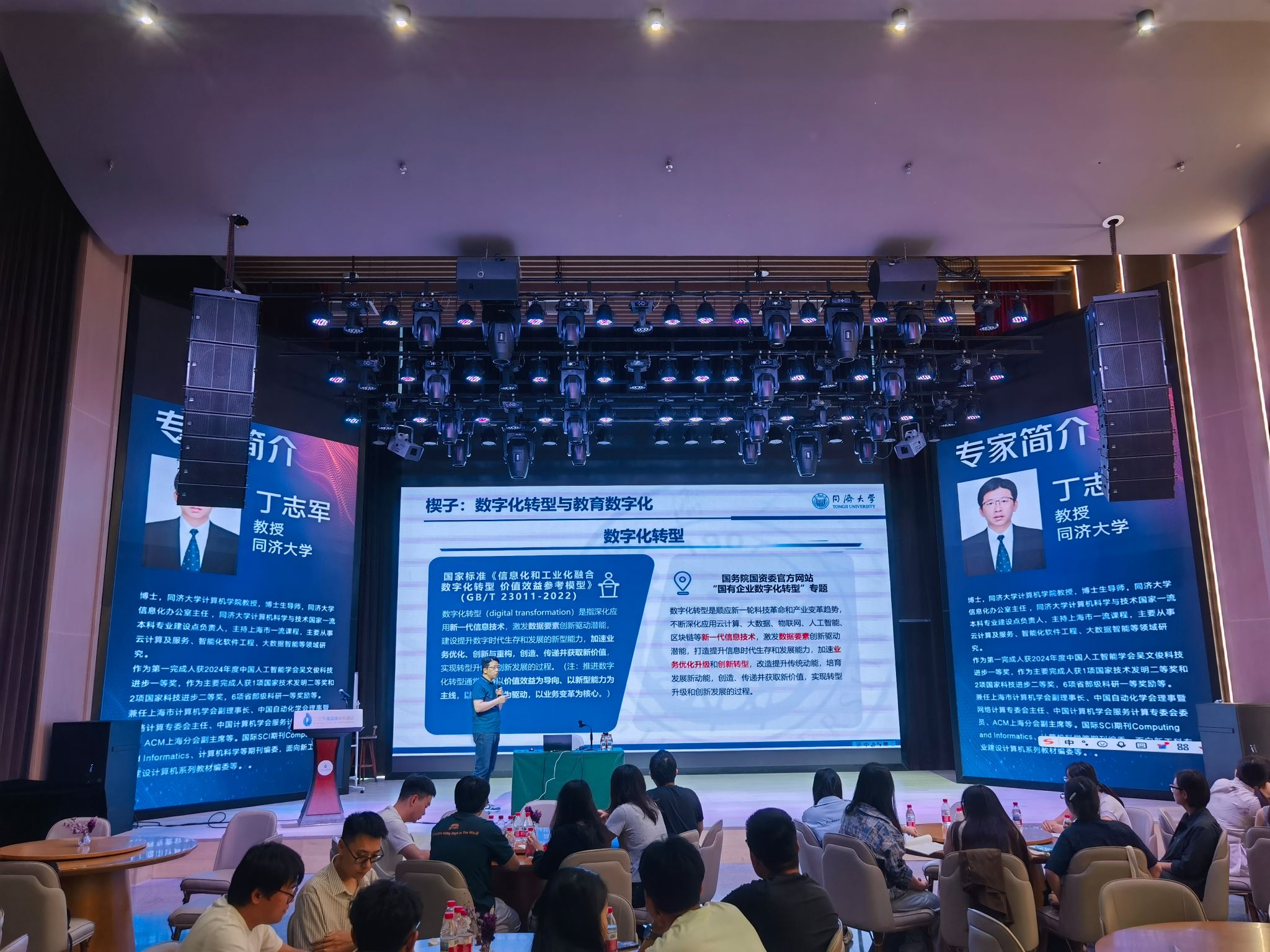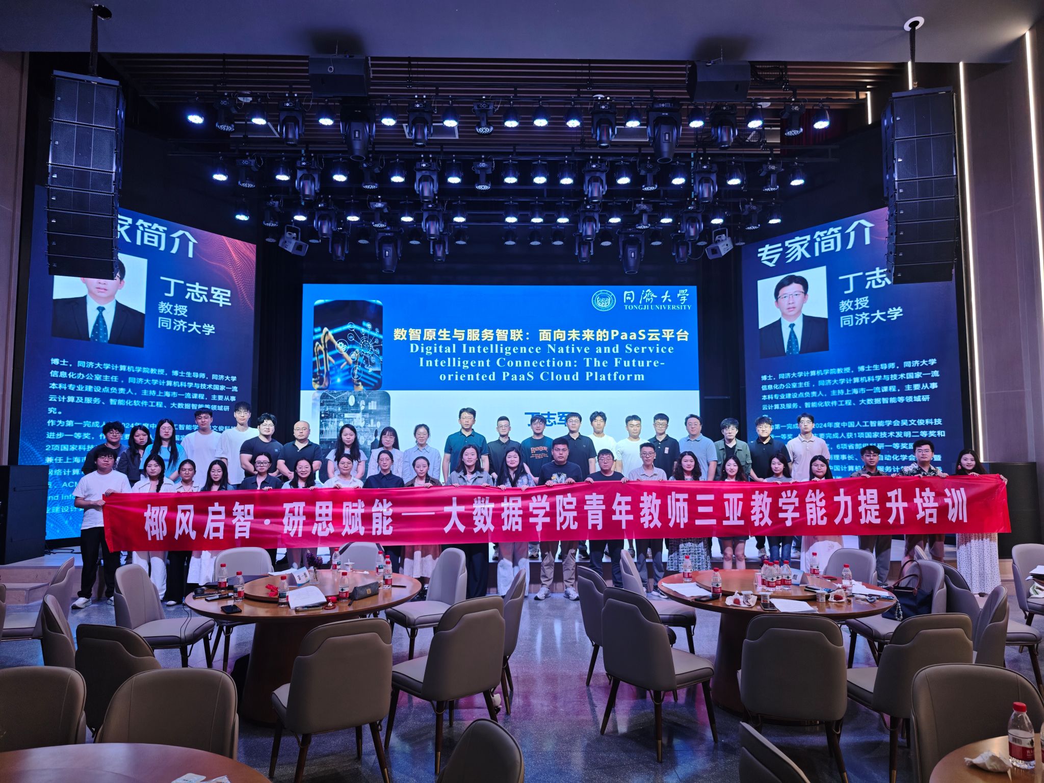 随后,丁教授聚焦《教育数字化:赋能未来教育新生态》,重点介绍了如何利用AI、大数据等技术搭建个性化教学平台实现精准教学,展示了同济大学在虚拟仿真实验教学等方面的创新实践,为参训教师提供了可借鉴的数字化教学改革方案。当晚,丁教授与参训教师围坐一堂,围绕“智能时代计算机学科交叉与人才培养”主题展开围炉夜话,凝聚了学科交叉育人的共识。