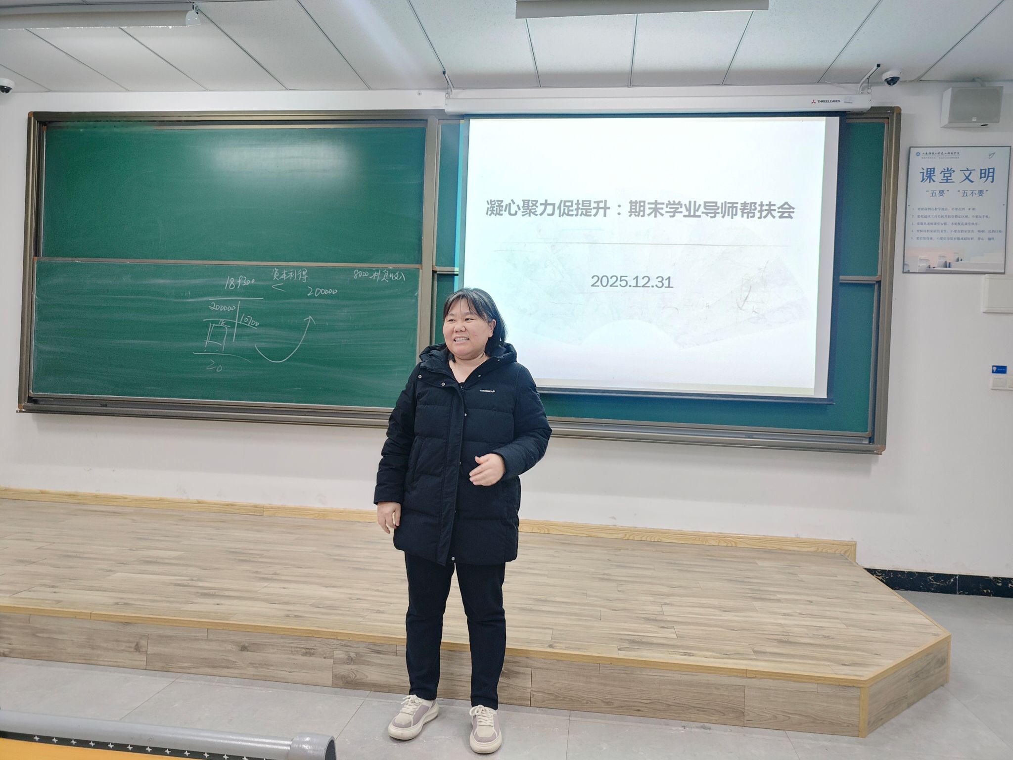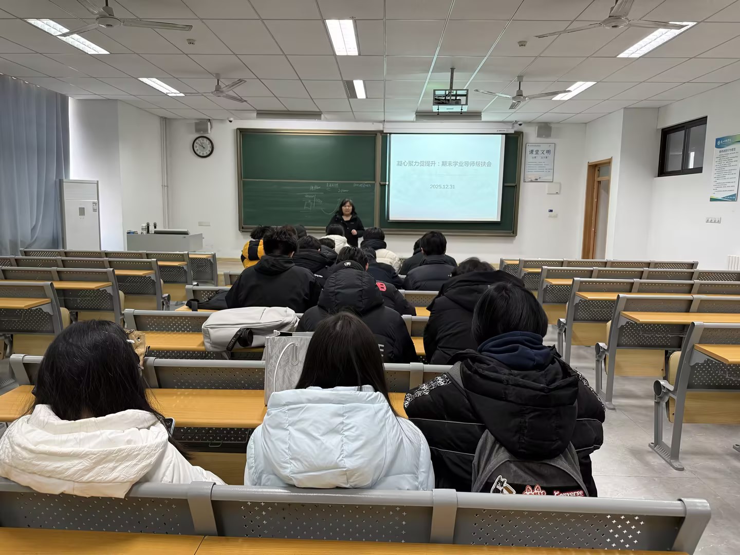 期末临近,为进一步落实立德树人根本任务,帮助学生精准把握复习方向、规范考试行为、缓解备考压力,切实提升期末复习效率与学习质量,2025年12月31日,学业导师陈端君为计算机科学与技术(本)25-1班的学生召开了期末学业导师帮扶会。