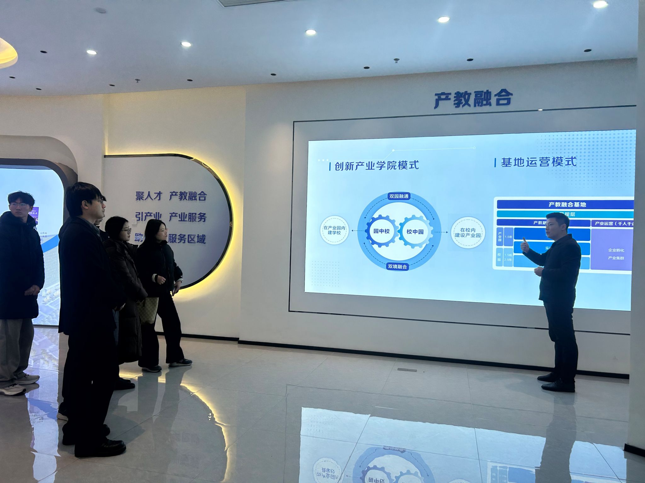 考察过程中,企业方重点介绍了基地打造的“4321”人才培养模式,该模式构建以“知识层——实训层——实战层——呈现层”为核心的四层能力递进体系,围绕专业技能、认知能力与通用素质三大维度,贯通校园教学与产业园实践双场景,并通过企业化运营管理,实现人才培养与产业需求的高效对接。企业基地聚焦“AI+3D图形学”方向,深度融合产业前沿技术,为头部企业提供数字孪生、数字游戏等高附加值服务。