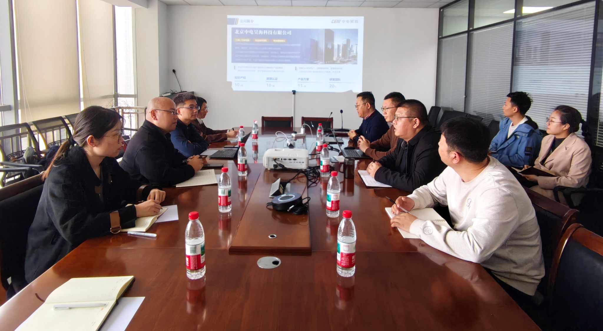 在中电昊海,交流团队与中电昊海副总经理左巍、信息化事业部负责人王飞、人工智能团队负责人李言芹等企业相关代表展开座谈。座谈会上,双方就能源电力领域数字化、智能化发展趋势展开深入交流,聚焦大数据、物联网等技术在电力行业的应用场景、产业前沿科技研发方向等核心问题交换意见。王昊老师详细介绍了大数据学院的专业建设、人才培养体系及科研教学特色,左巍经理则分享了在能源智能化领域的技术成果、项目实践经验与行业人才需求标准。双方还围绕产教融合模式创新、实习实训基地建设、人才联合培养等方面进行初步探讨,均表达了深化合作、实现资源共享与优势互补的强烈意愿。