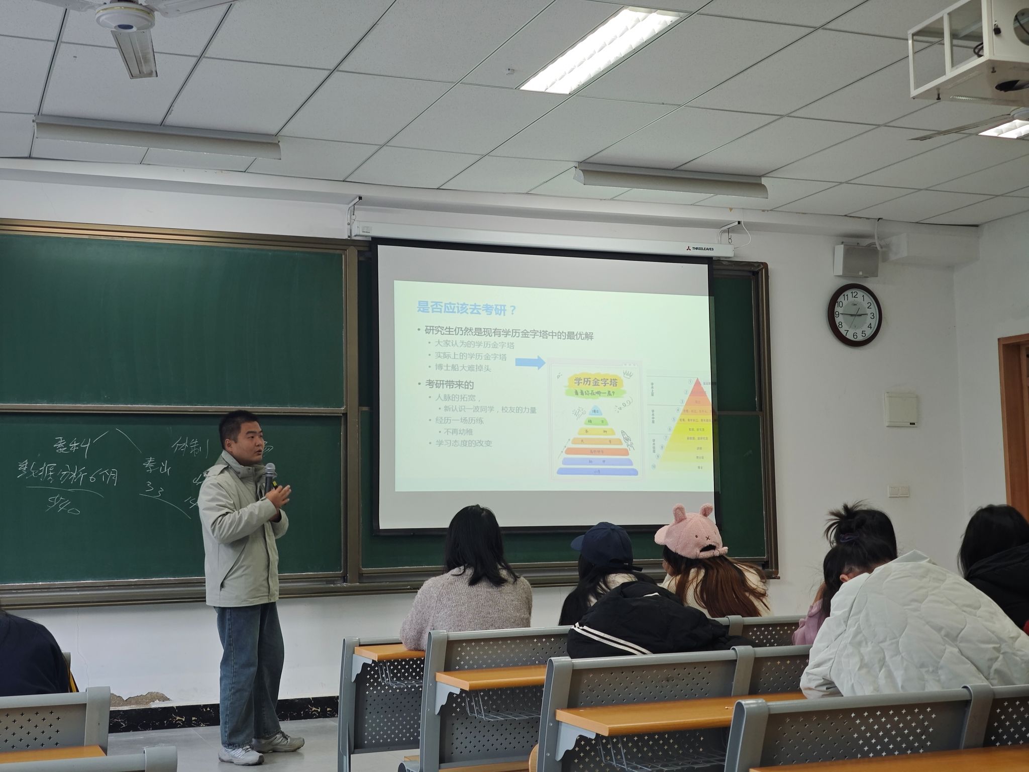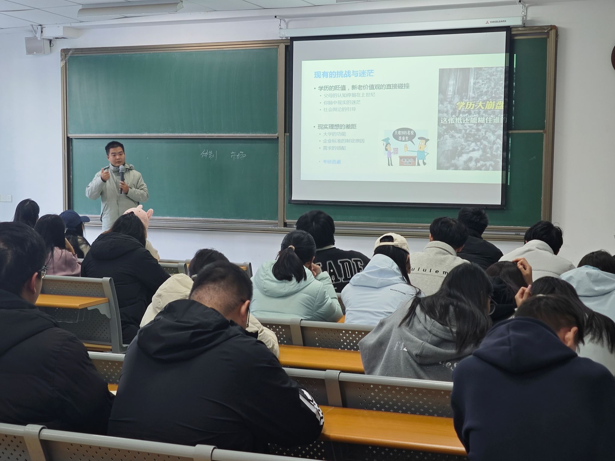 讲座伊始,卓建业老师对李蓟涛讲师的到来表示欢迎,并简要介绍了讲座的核心目的——为处于考研迷茫期的学生提供针对性指导,帮助大家结合自身情况制定备考计划。随后,李蓟涛讲师以“回望研究生历程心得与考研建议”为主题展开分享。