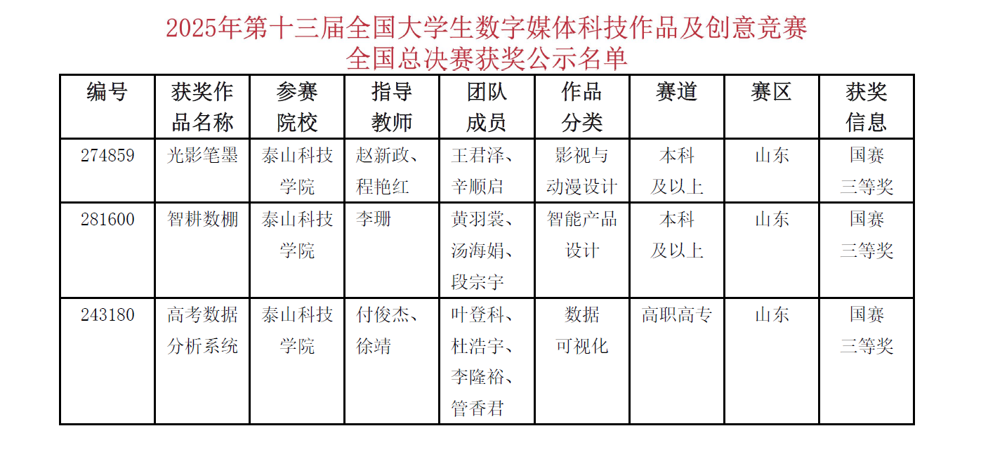 作为在全面贯彻落实党的二十大精神、推进“教育强国、科技强国、人才强国”战略背景下举办的全国性高水平学科竞赛,本届数媒大赛吸引了众多高校的优秀选手踊跃参与。我校大数据学院的参赛学子们经过精心准备和激烈角逐,最终在影视与动漫设计、智能产品设计、AIGC类数字创意作品创作、数据可视化、虚拟现实与游戏多个竞赛方向中脱颖而出。其中3支队伍荣获国家三等奖,这些获奖同学在比赛中展现出了扎实的专业基础和良好的实践能力,充分展现了我校学生的风采。