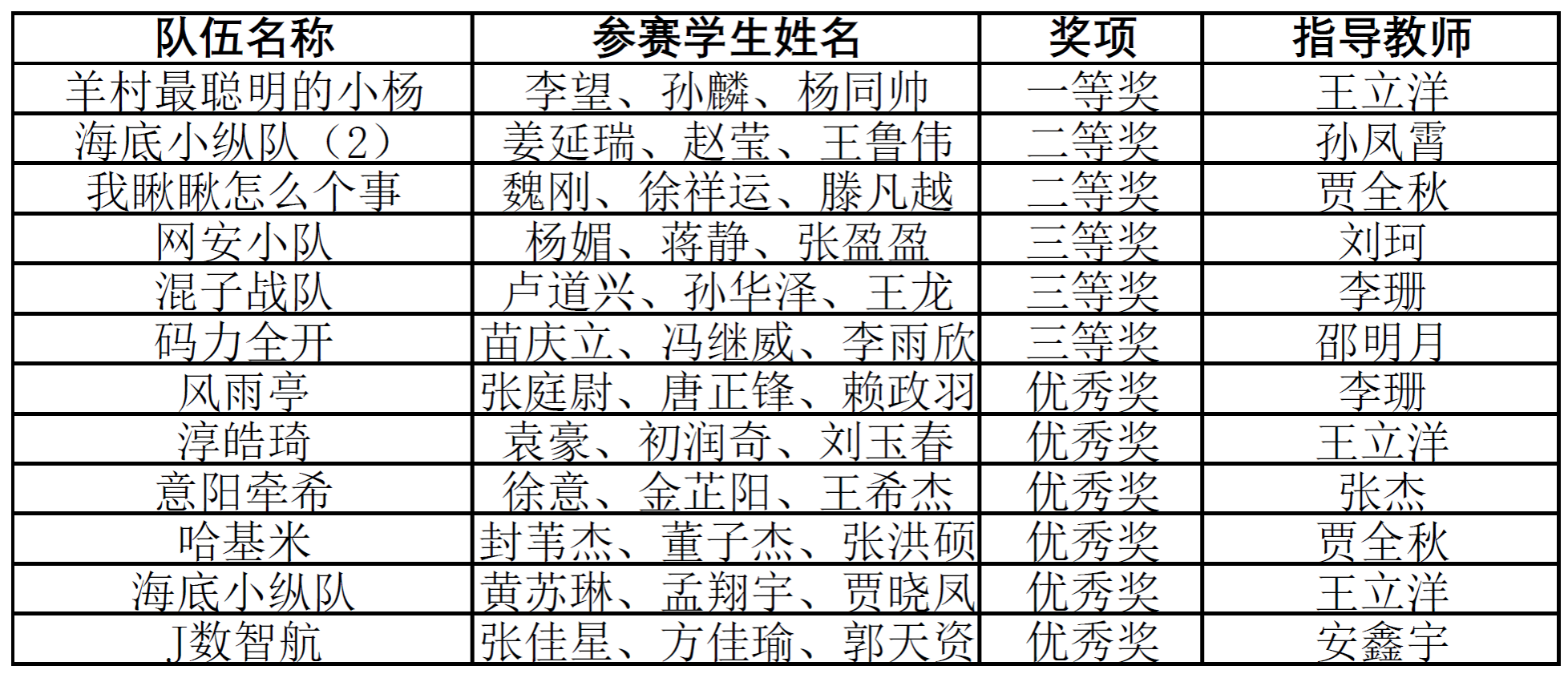 竞赛成绩严格参照CTF赛事通用规则,依据各参赛队伍成功解出的题目数量及累计用时进行综合评判与排名。经过近4个小时的智慧与耐力的激烈较量,大赛最终从23支报名参赛队伍中,评选出了12支获奖队伍。其中,1支队伍凭借卓越的技术实力和稳定的发挥摘得一等奖桂冠,2支队伍荣获二等奖,3支队伍获得三等奖,6支队伍获得优秀奖。