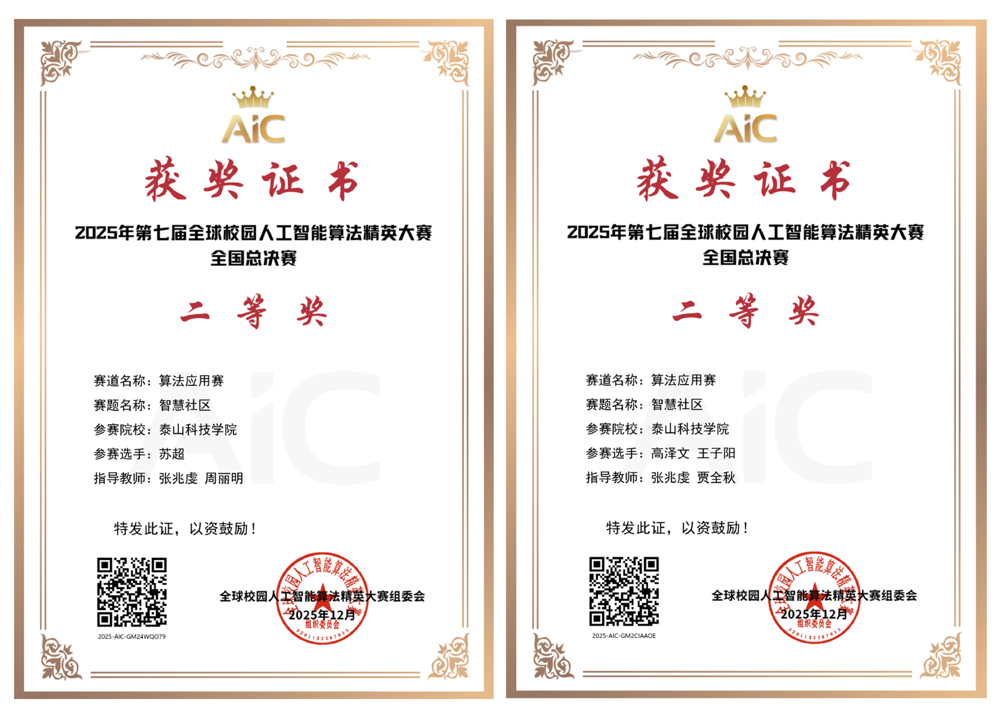 为推进产教协同育人、强化学生创新实践能力,持续推进学校“教育教学三提三创”主题年活动。近日,全球校园算法精英挑战赛全国总决赛成绩正式揭晓。我校大数据学院组织指导的两支学生团队表现优异,荣获全国二等奖2项,充分展现了泰科学子扎实的专业功底、出色的算法应用能力与高效的团队协作精神,为学校赢得了荣誉。