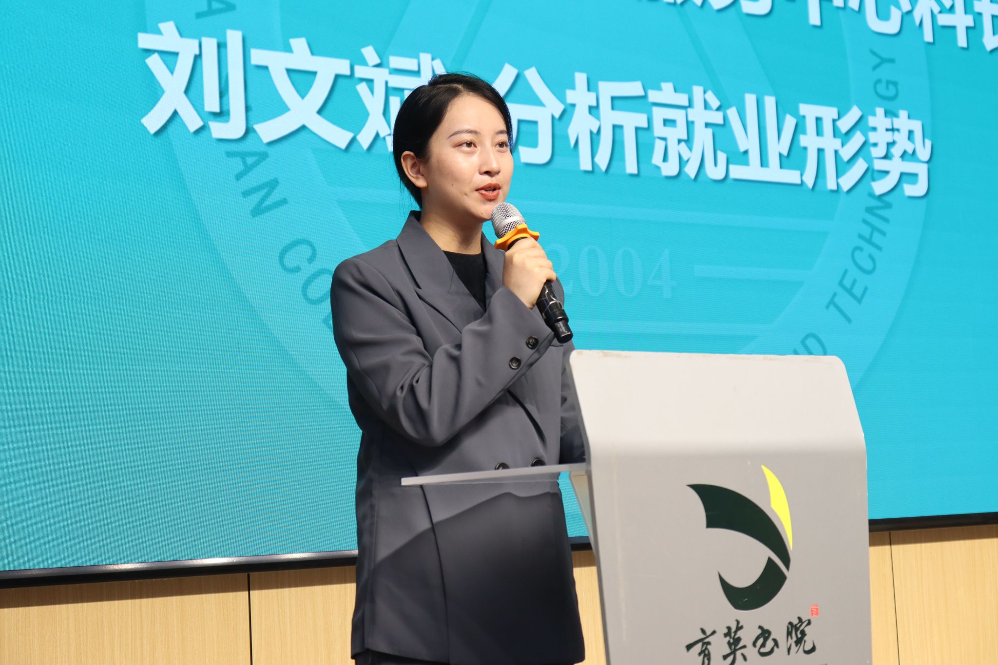 活动伊始,校就业创业指导与服务中心综合科科长刘文斌围绕2026年就业形势深度分享。他以宏观经济环境为切入点,串联行业发展新走向、岗位需求新变化与人才要求新趋势,通过翔实数据层层剖析就业市场的机遇与挑战,为在场毕业生带来一场兼具前瞻性、实用性与指导性的就业指导课。