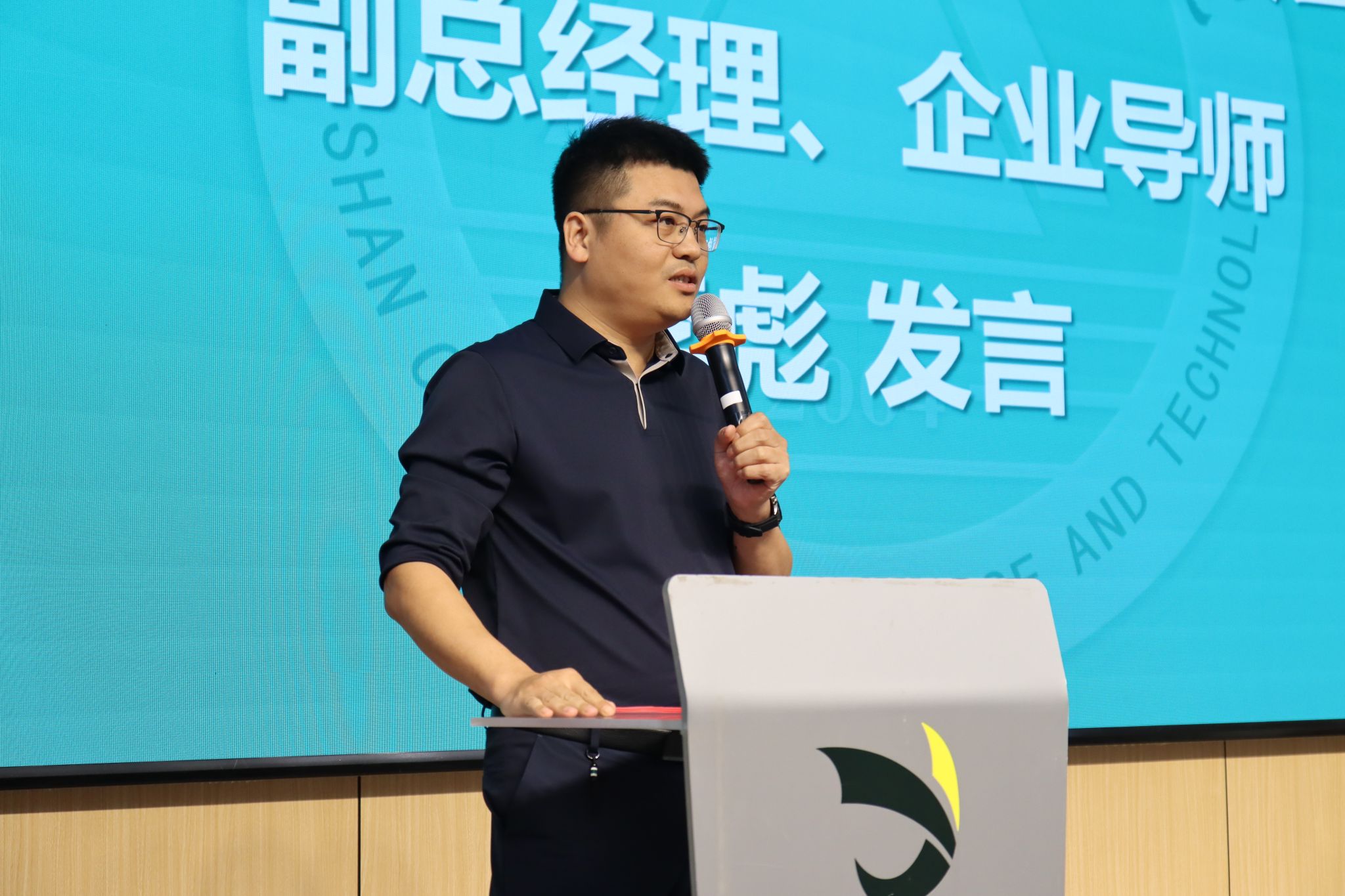 “职场先锋班”企业导师——山东菲利信数字科技有限公司副总经理李彪作为企业代表进行发言。他指出,“职场先锋班”搭建了校企协同育人的优质平台,企业将充分发挥行业资源优势,把前沿技术、实战项目与岗位需求融入教学指导中,通过带教真实项目、分享行业经验,帮助学员提前熟悉职场规则、提升实战能力,助力大家成长为适配数字经济发展需求的职场先锋。
