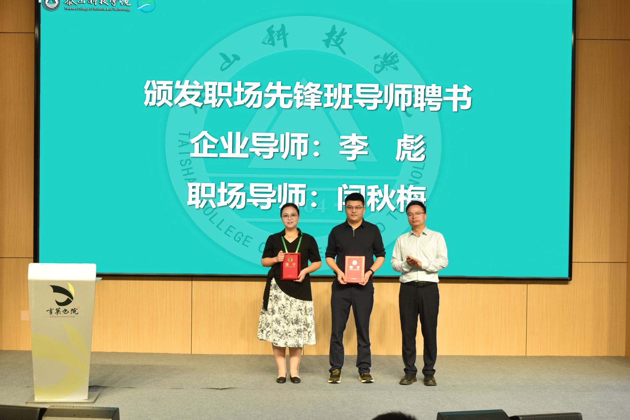 泰山科技学院学生工作处、就创中心主任王焱为“职场先锋班”企业导师、职场导师颁发聘书。这不仅展现了学校对“职场先锋班”建设的高度重视,更搭建起“校-企-导师”协同育人的关键桥梁,为切实为提升人才培养质量、锻造实战型先锋人才注入强劲助力。