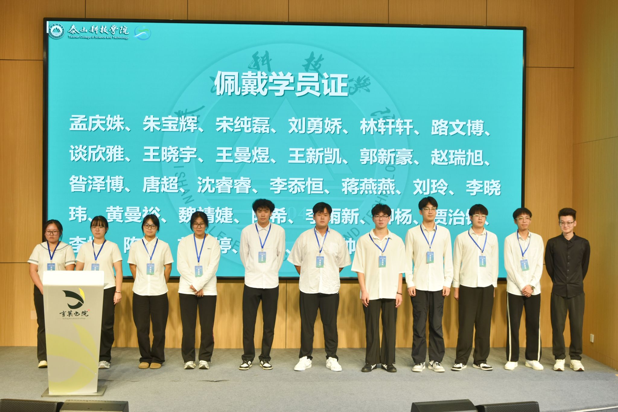 大数据学院院长助理贾全秋为“职场先锋班”全体成员佩戴学员证。这一庄重的仪式,正式宣告学员们成为“职场先锋班”的一员——不仅以具象化的方式确认了学员身份,更标志着他们向着“实战型职场先锋”的培养目标迈出关键一步,开启了系统化成长的全新征程。