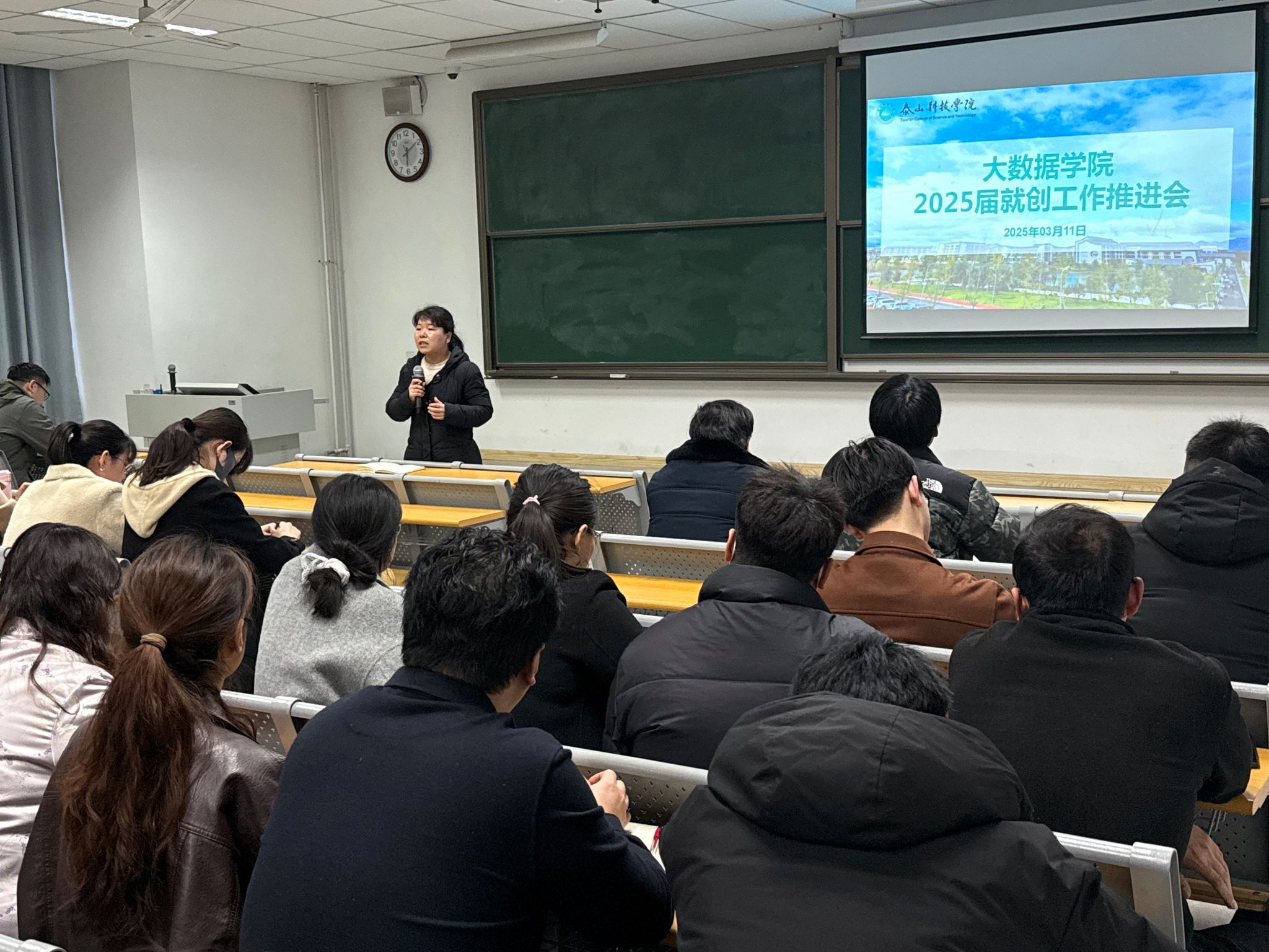 为进一步落实学校有关就业创业工作的具体部署,有效推进学院就业创业工作,大数据学院于2025年3月11日下午17:00在J1-216召开新学期就业创业工作推进会。大数据学院院长霍敏霞、副院长刘睿智和全体教职工参会,会议由学院就业创业办公室主任石冉冉主持。