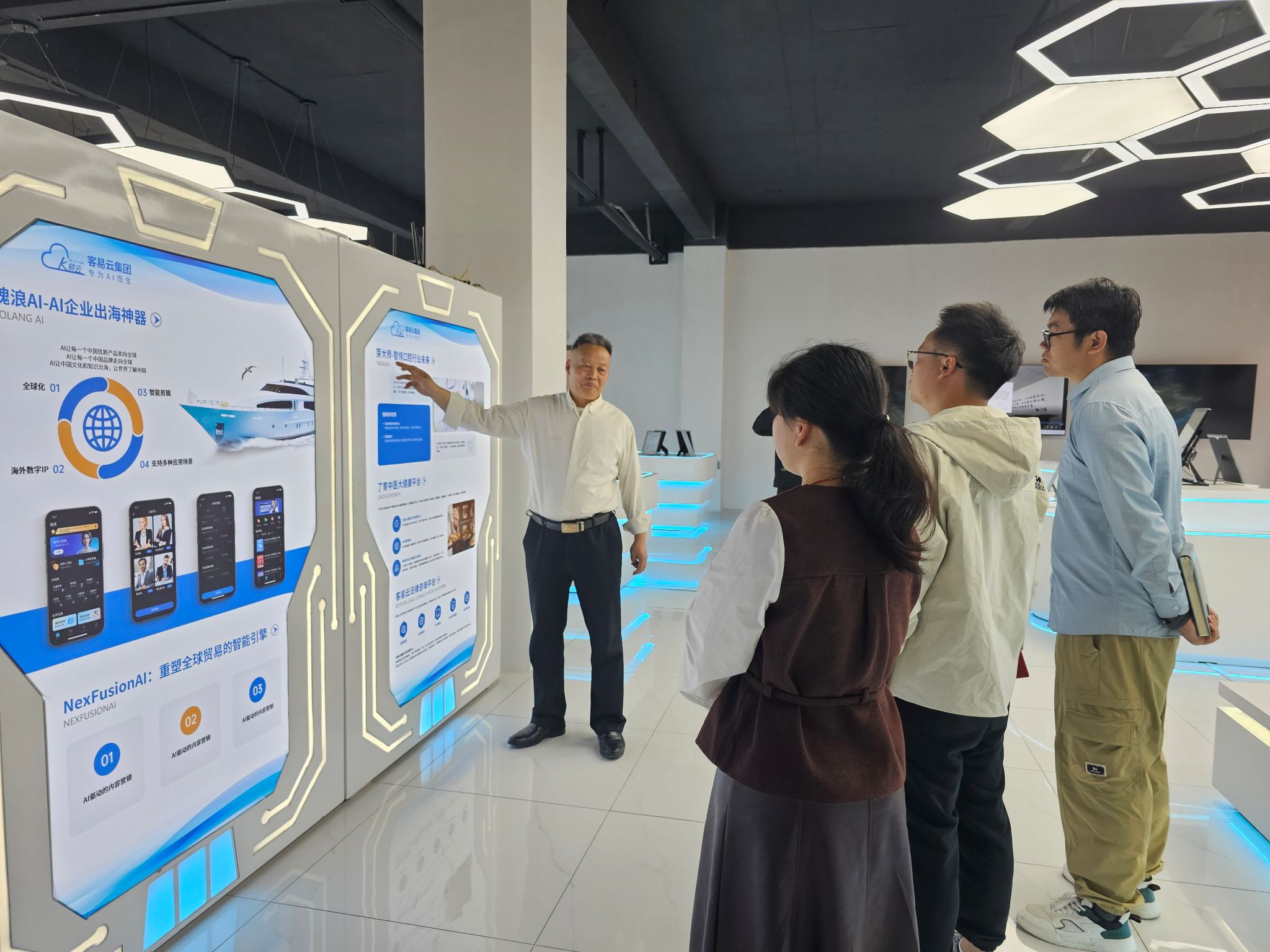 在岱岳AI数字人力产业园,客易云集团党支部书记王化田详细介绍了集团的发展历程、核心业务、人才战略及在人工智能产业领域的创新成果与未来发展战略。实地走访参观了人工智能业务板块、数字人直播基地、大学生微创业项目、算力机房和智能体等,感受到企业整体实力,深入了解了客易云集团的企业发展历程和研发情况。
