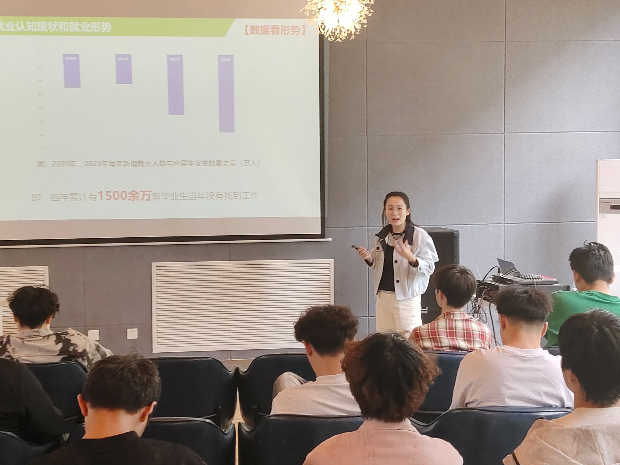 接着,高老师提出,在当前经济社会发展形势下,个体应深入思考职业与生涯规划的方向。在就业挑战与机遇交织并存的时代背景下,科学规划人生发展路径已成为亟待解决的重要课题。这不仅涉及生涯教育体系的完善,更关乎个人职业选择的科学性与前瞻性。当前,虽然部分群体通过考研深造、出国留学或报考公务员等途径暂缓就业压力,但职业发展的选择不应局限于此。随着新经济形态的蓬勃发展,创业、自由职业以及直播、电商带货、自媒体运营等新兴行业,为职业发展开辟了多元化路径。在此过程中,高老师建议大家需紧密结合当下与未来社会发展需求,培养创新思维能力,主动把握时代发展机遇,勇于突破传统职业发展模式的束缚,积极探索职业发展新方向,才能实现个人价值与社会价值的有机统一。