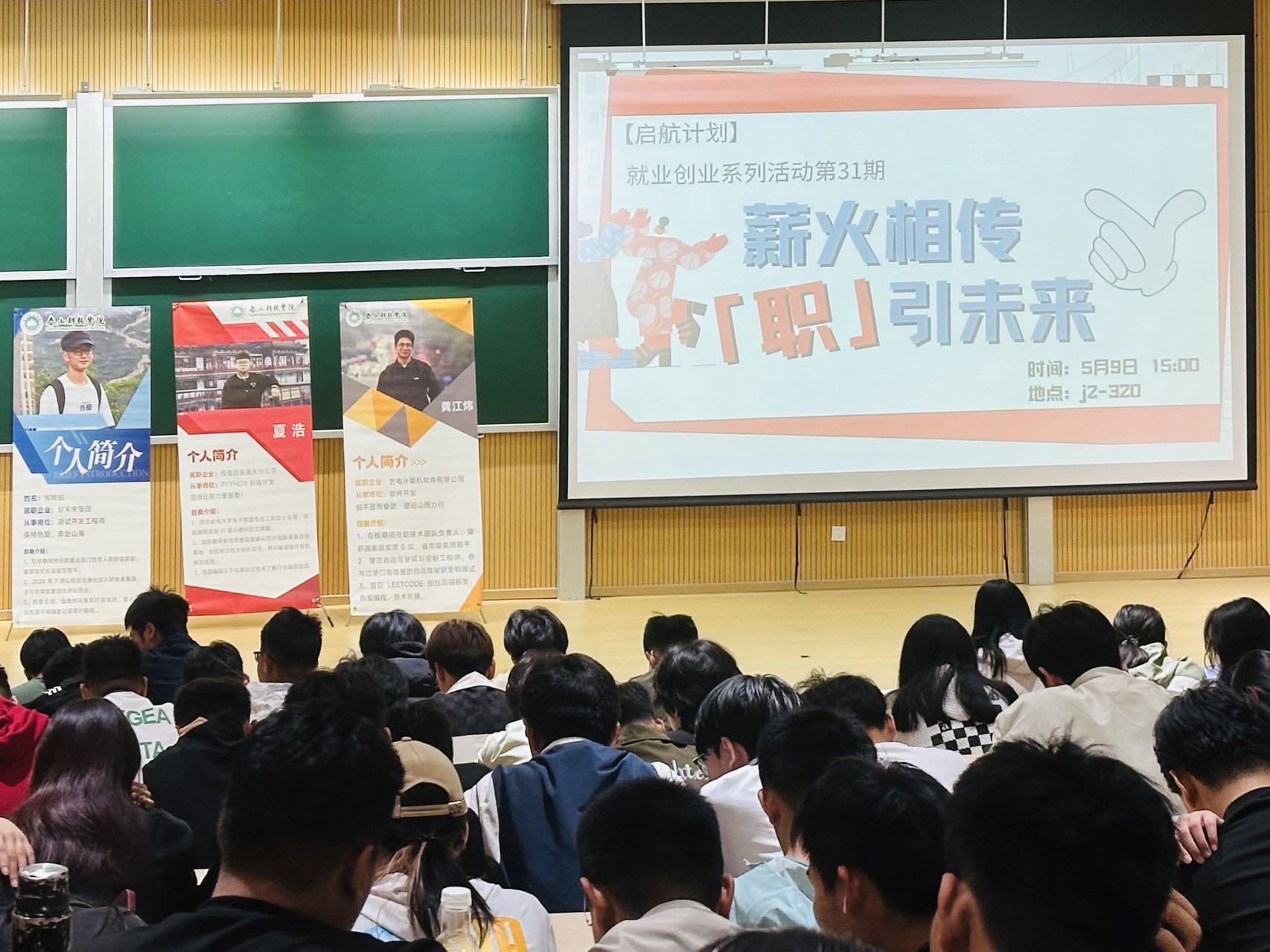 为助力我院学生明晰职业发展路径,系统规划个人成长蓝图。大数据学院团总支•学生会就业创业助理团于5月9日在J2-320教室顺利举办【启航计划】“薪火相传,职引未来”就业创业系列活动,邀请了优秀毕业生校友代表郑辉航、龚江炜、夏浩三位嘉宾为同学们进行升学、职场经验分享,活动吸引了250余名学生报名参加。
