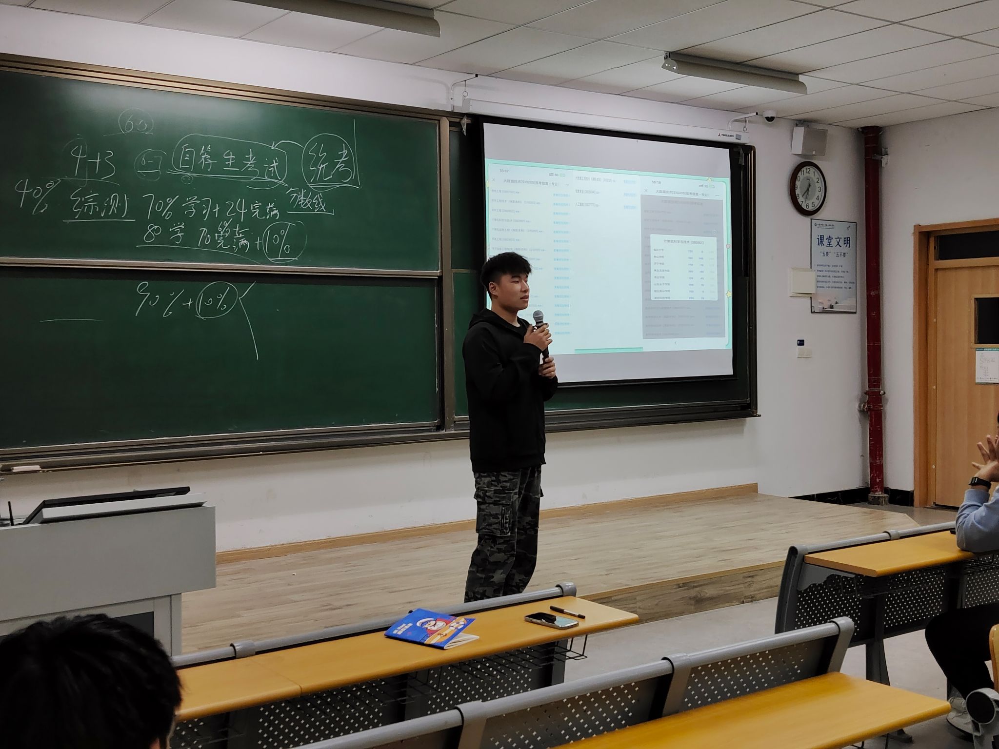 为了帮助我院学子深入了解专升本考试,提前做好学习规划,科学备考。大数据学院团总支·学生会就业创业助理团于2024年10月13日19:00在J1-318教室成功举办大数据学院“助力升本,扬帆起航”专升本经验分享会。本次活动由侯雅娴老师主持,邀请计算机科学与技术(专升本)23-2班蔡承远、计算机科学与技术(专升本)23-3班杜尚直以及数据科学与大数据技术(专升本)23-2班吴林阳三名专升本成功的同学担任主讲人,为专科同学分享专升本上岸的成功经验,活动覆盖100余人。