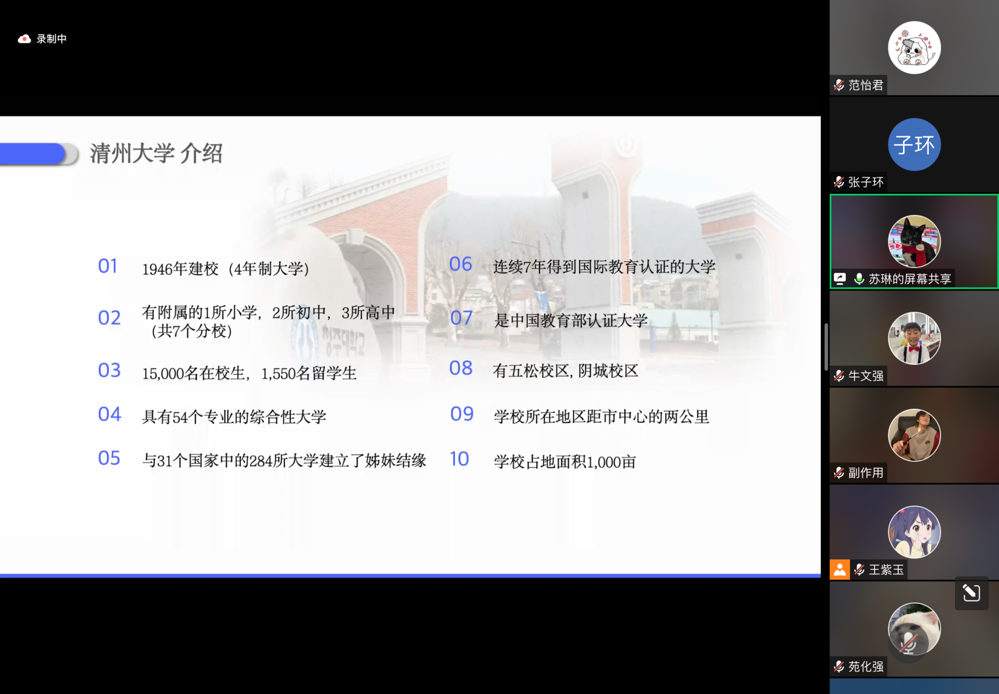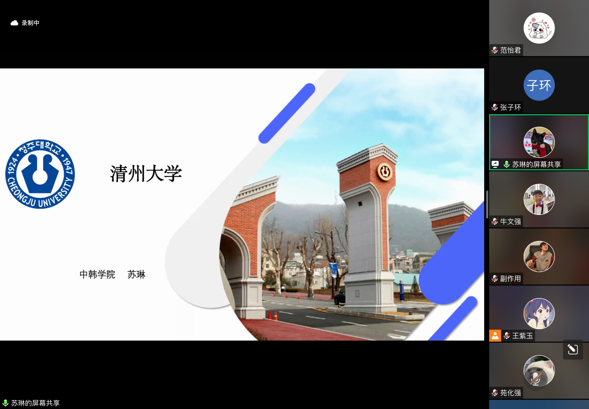 活动中,苏琳老师重点介绍了清州大学的概况,包括学校的历史、规模、专业、国际认证、地理位置、产业基础设施、生活配套设施等。她指出清州大学是一所综合性大学,与中国建交多年,并且学校有多个产业园,为留学生提供了就业机会。苏琳老师表示,面对当下越来越难的考研和就业形式,出国留学不失为一种更好实现个人价值的方式,学生们可以结合自身专业特色、学业水平以及人生理想合理地选择留学去向。利用好学校和学院提供的留学项目和资源,抓住时机,选择适合自己的道路,实现理想抱负。