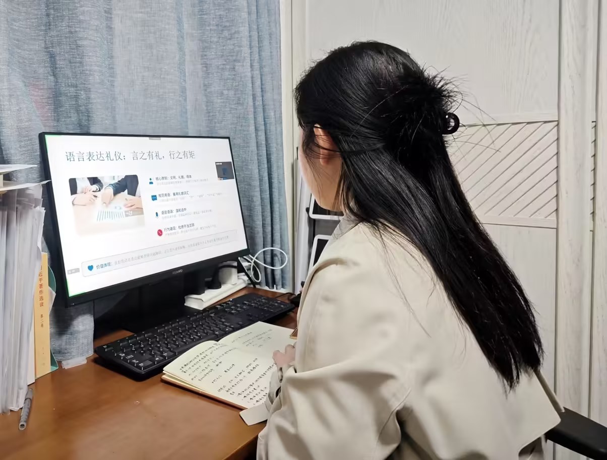 辅导员刘雪老师面向毕业生开展“礼行天下,仪在职场”线上就创活动,从入职后实际场景出发拆解了七大核心礼仪模块。仪容仪表方面明确男女毕业生的职场着装规范,强调整洁得体、符合职业场景;行为举止方面讲解站姿、坐姿、手势、眼神交流的标准要求;沟通礼仪方面指导使用文明礼貌用语,掌握高效倾听与表达的技巧;会议礼仪涵盖会前准备、会中参与、会后跟进的全流程;电话礼仪强调接听、拨打、挂断的规范与礼貌;商务宴请礼仪讲解座次安排、餐具使用、敬酒等要点。刘雪老师强调,职场礼仪不仅是个人修养的体现,更是职场竞争力的隐形翅膀。