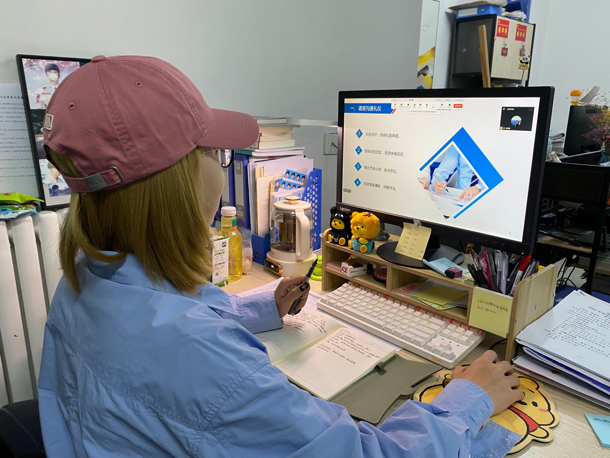 辅导员隋志敏老师组织“职场礼仪”线上主题班会,从着装礼仪、沟通礼仪、邮件礼仪、会议礼仪、社交礼仪等方面进行了细致讲解。她指出第一印象至关重要,建议同学们根据行业和企业文化选择合适的着装,做到整洁、得体、专业。在沟通方面强调尊重、倾听、礼貌表达的分寸感。针对线上办公,重点介绍了视频会议礼仪,如准时进入、麦克风开关时机、发言前礼貌示意等。通过邮件案例对比展示规范格式、清晰主题行、恰当称谓与落款的实际应用,并提醒同学们注意守时、不随意打断他人、主动问候等细节。