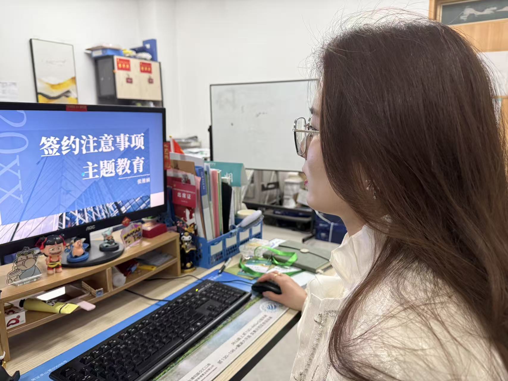 辅导员侯雅娴结合自身工作经验,聚焦毕业生签约中的细节问题,提醒学子签约前务必核实用人单位资质,确认协议条款与招聘承诺一致,尤其关注薪资构成、社保缴纳、工作地点等核心内容,避免因疏忽大意造成权益受损。她鼓励学子主动学习就业相关法律知识,增强自我保护意识,遇到疑问及时向学校、老师咨询。