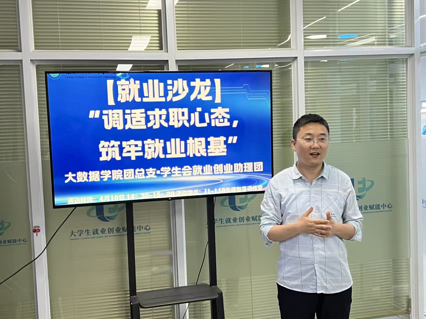 为帮助我院学子缓解求职焦虑、树立积极就业心态,精准把握就业关键节点。大数据学院团总支·学生会就业创业助理团于4月10日下午14:30在生涯指导训练室顺利开展“调适求职心态,筑牢就业根基”沙龙活动。本次活动邀请到了校级就创导师孙朋担任主讲嘉宾,为同学们带来一场干货满满的就业规划指导分享,从而吸引了众多同学积极报名参加。