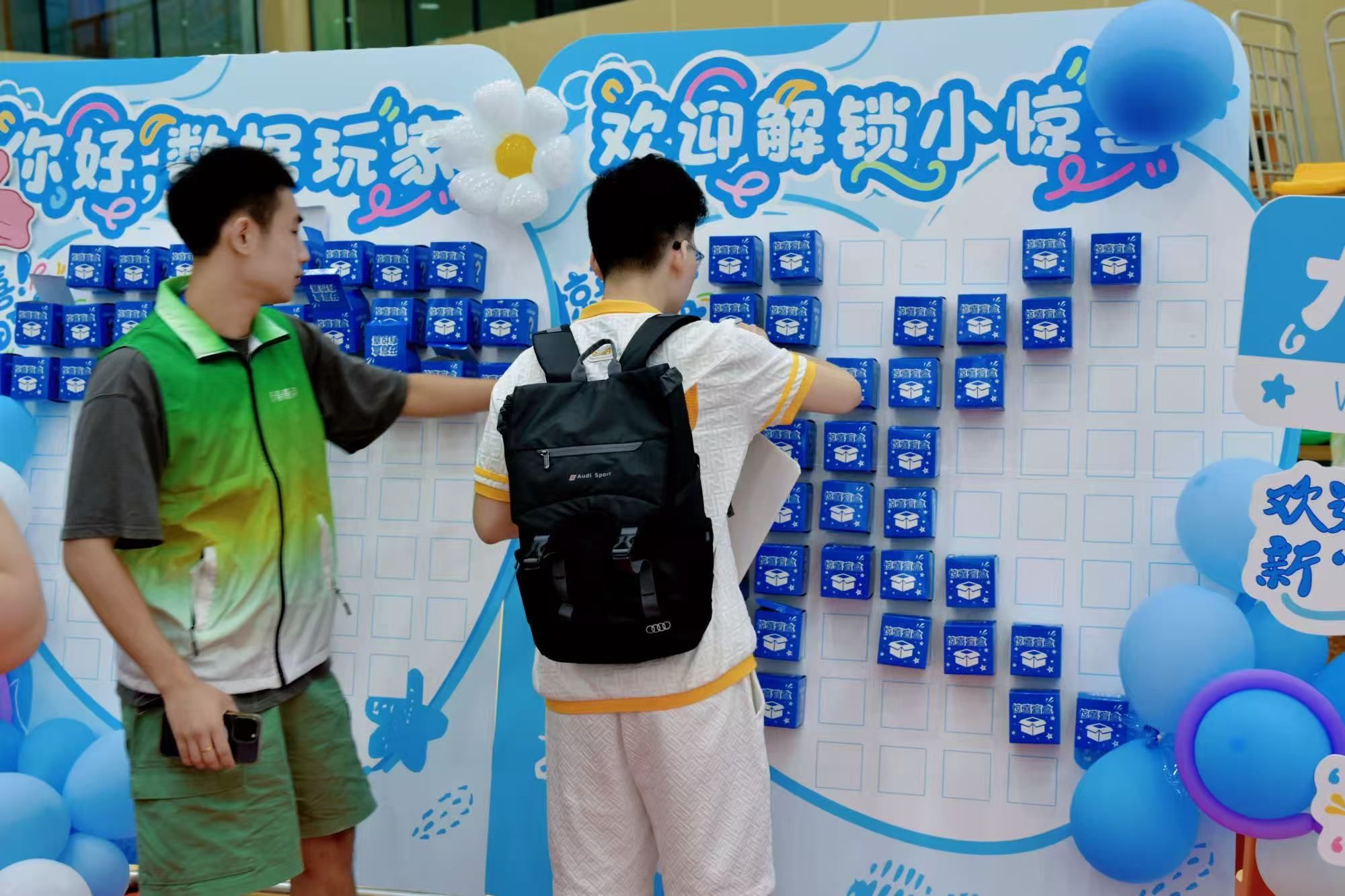 9 月 12 日,位于岳动馆的大数据学院迎新点已完成 “焕新升级”。报到通道规划得清晰顺畅,功能分区一目了然,醒目的标识牌让人一眼就能找到方向;特别设置的 “戳戳乐” 互动区,更给严肃的报到流程添了几分趣味。报到区、家长休息区、医疗箱,现场物资堆得满满当当,环境收拾得干干净净,“专业、温暖、有序” 的迎新理念,在每一处细节里都能感受到,就等新生们次日前来 “打卡”。