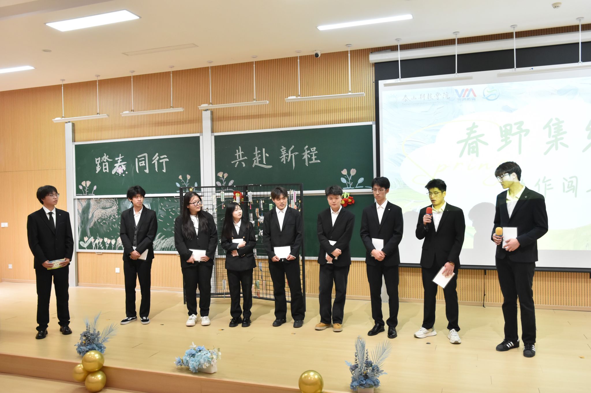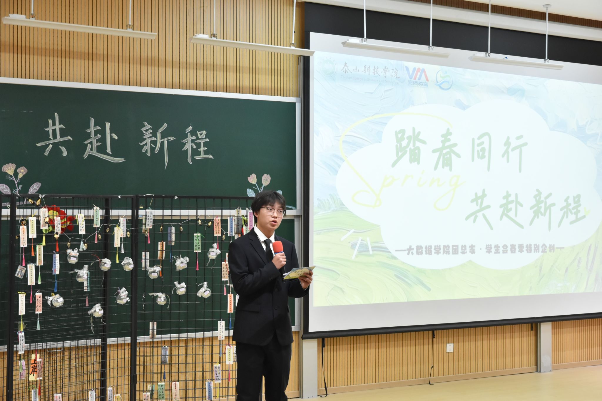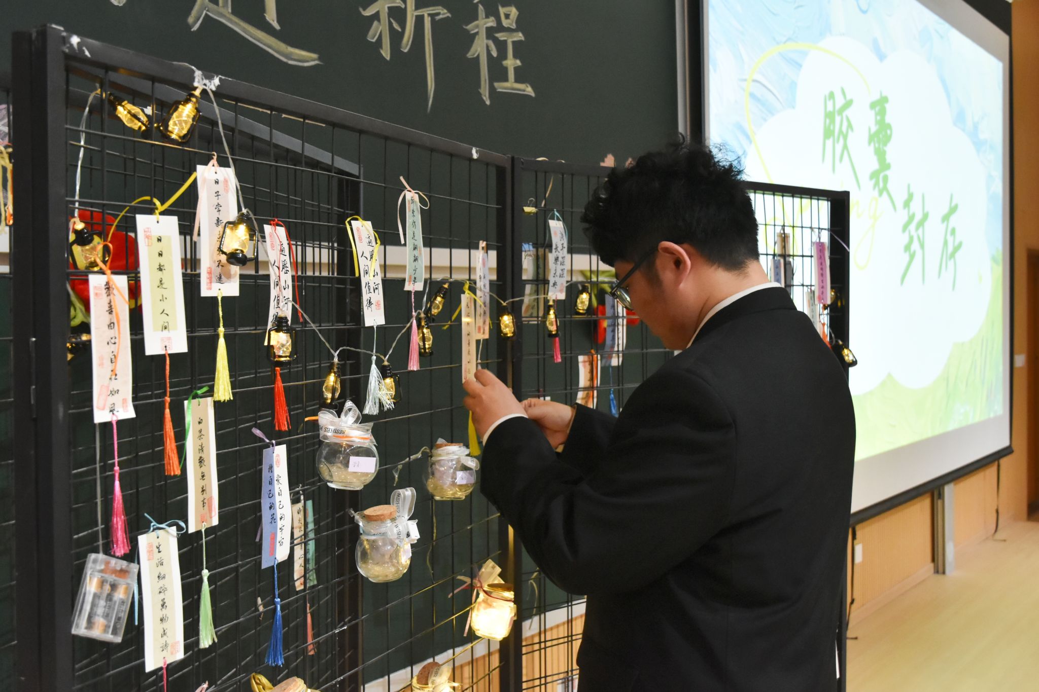 写满心愿的信纸被仔细折好、封存进胶囊。各部门代表依次上台,将胶囊挂上“青春新程胶囊墙”。一面普通的墙,瞬间成为承载全体学生干部坚定决心的许愿墙。那些封存的,不只是文字,更是对新学期的承诺;那些挂起的,不只是胶囊,更是彼此见证的约定。