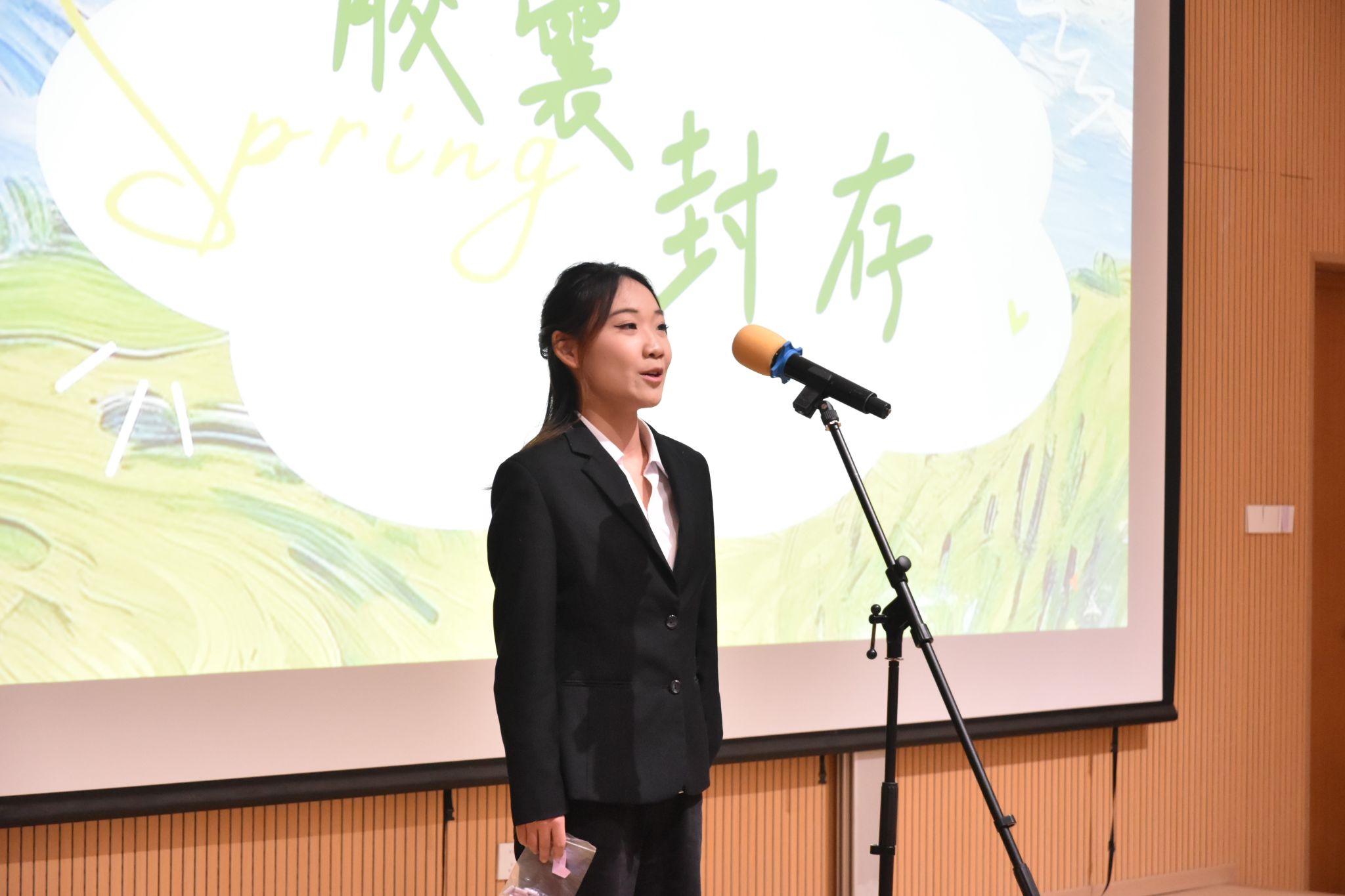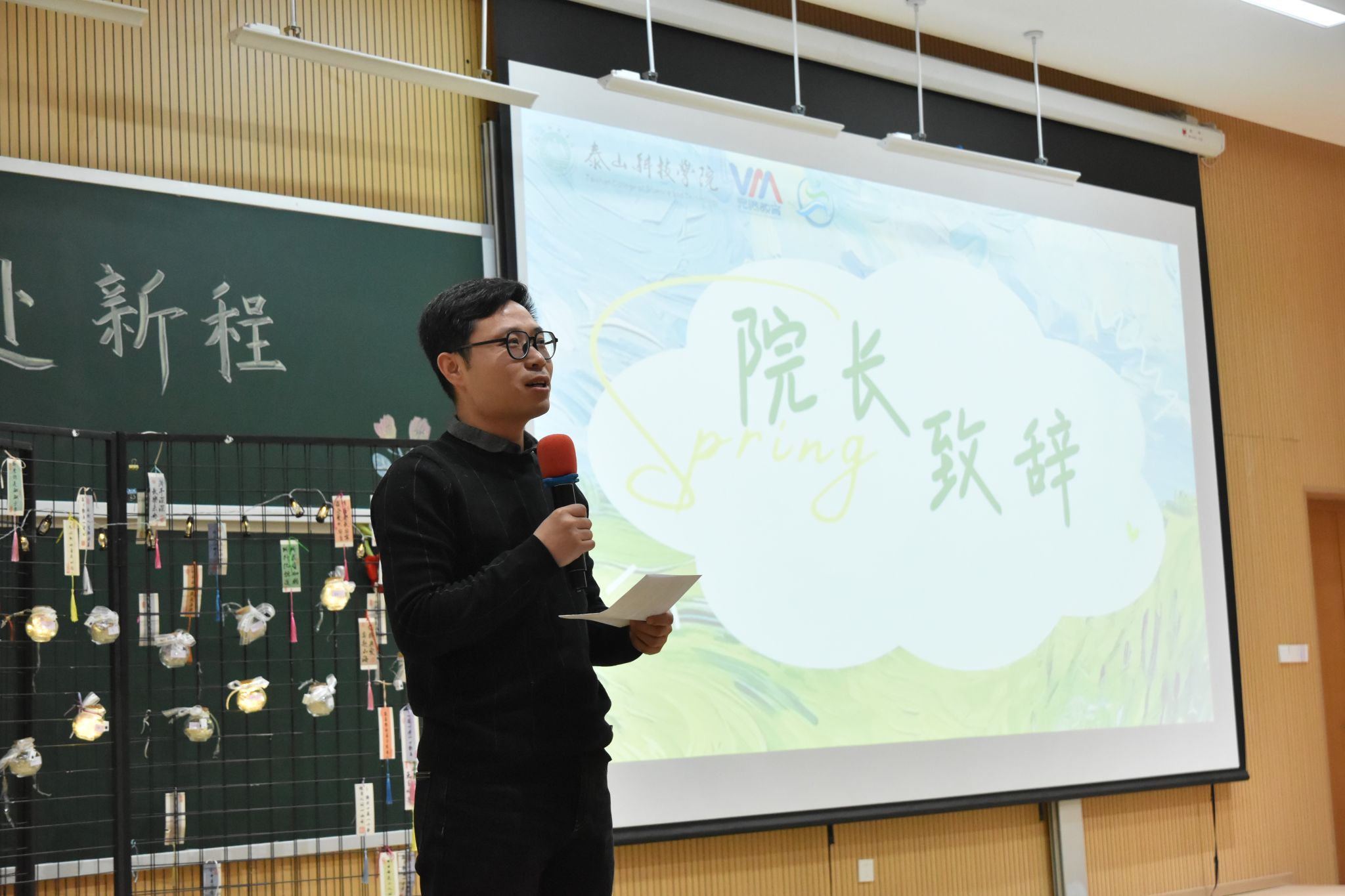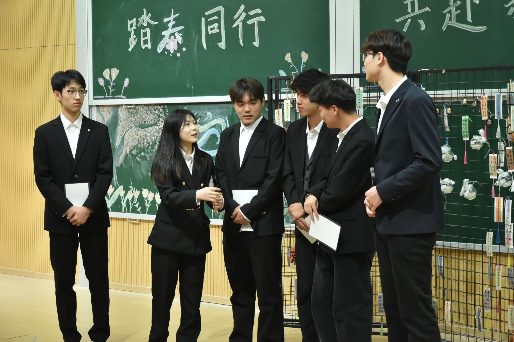 写满心愿的信纸被仔细折好、封存进胶囊。各部门代表依次上台,将胶囊挂上“青春新程胶囊墙”。一面普通的墙,瞬间成为承载全体学生干部坚定决心的许愿墙。那些封存的,不只是文字,更是对新学期的承诺;那些挂起的,不只是胶囊,更是彼此见证的约定。