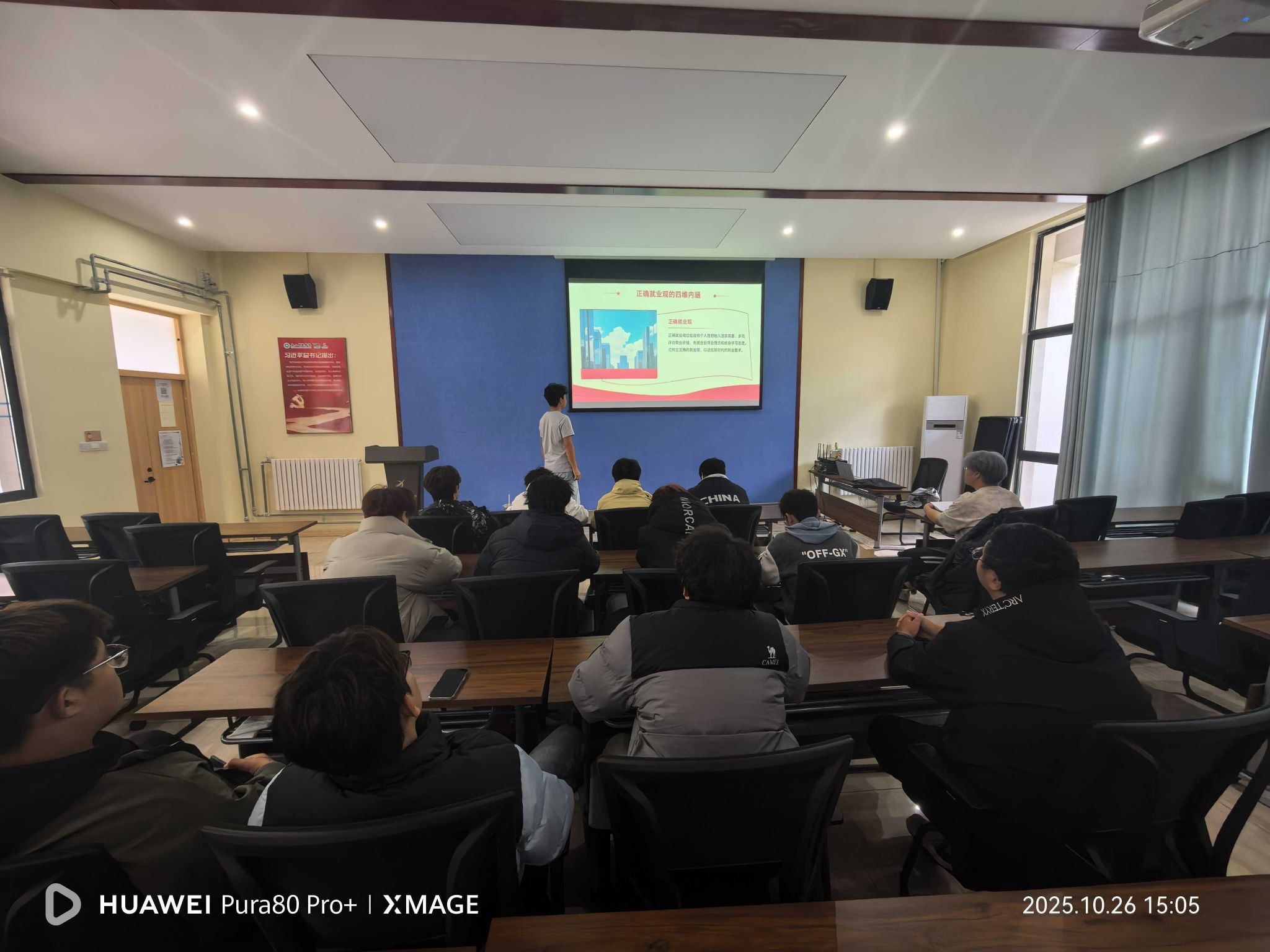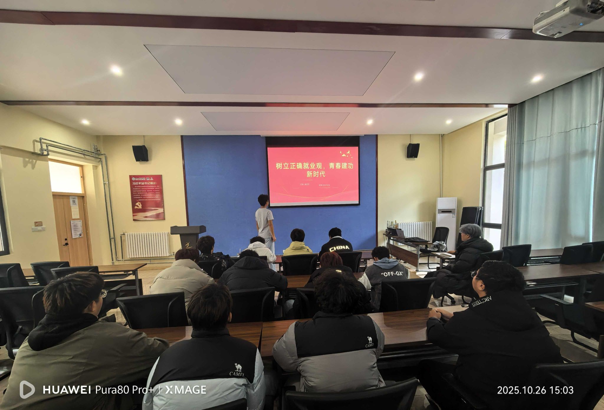 为帮助同学们认清就业形势、树立正确就业观,11月11日,大数据学院软件技术2025级2班在九和书院110教室举办“树立正确就业观,青春建功新时代”主题活动,25名同学全员参与。活动伊始,崔文轩同学强调就业形势与多元路径拓展的重要性。随后,他通过PPT详解新时代就业机遇与挑战:当前就业市场结构性矛盾突出,传统产业岗位缩减,数字经济等新兴赛道岗位旺盛,但人才供给不足,同时面临技术替代、学历通胀等挑战,终身学习成为必然。他还介绍了八部门联合印发的《促进更充分更高质量就业专项行动方案》及《促就业倡议书》,解读岗位拓展、重点群体帮扶、技能升级、服务优化四大重点领域。活动在同学们铿锵有力的宣誓声中落幕,大家表示将主动提升自身能力,在各类岗位上挥洒青春汗水,践行“请党放心,强国有我”的誓言,为民族复兴贡献青春力量。