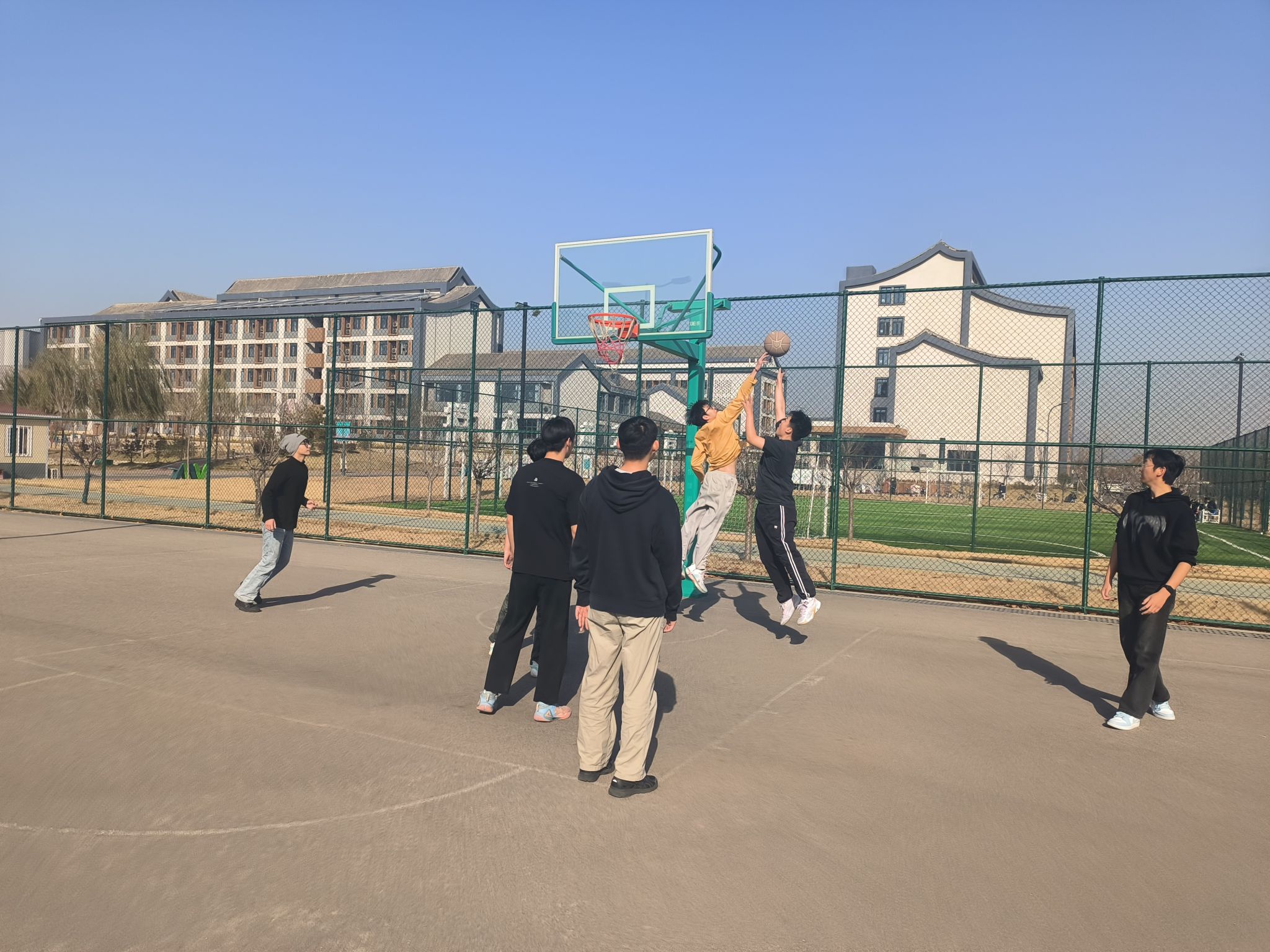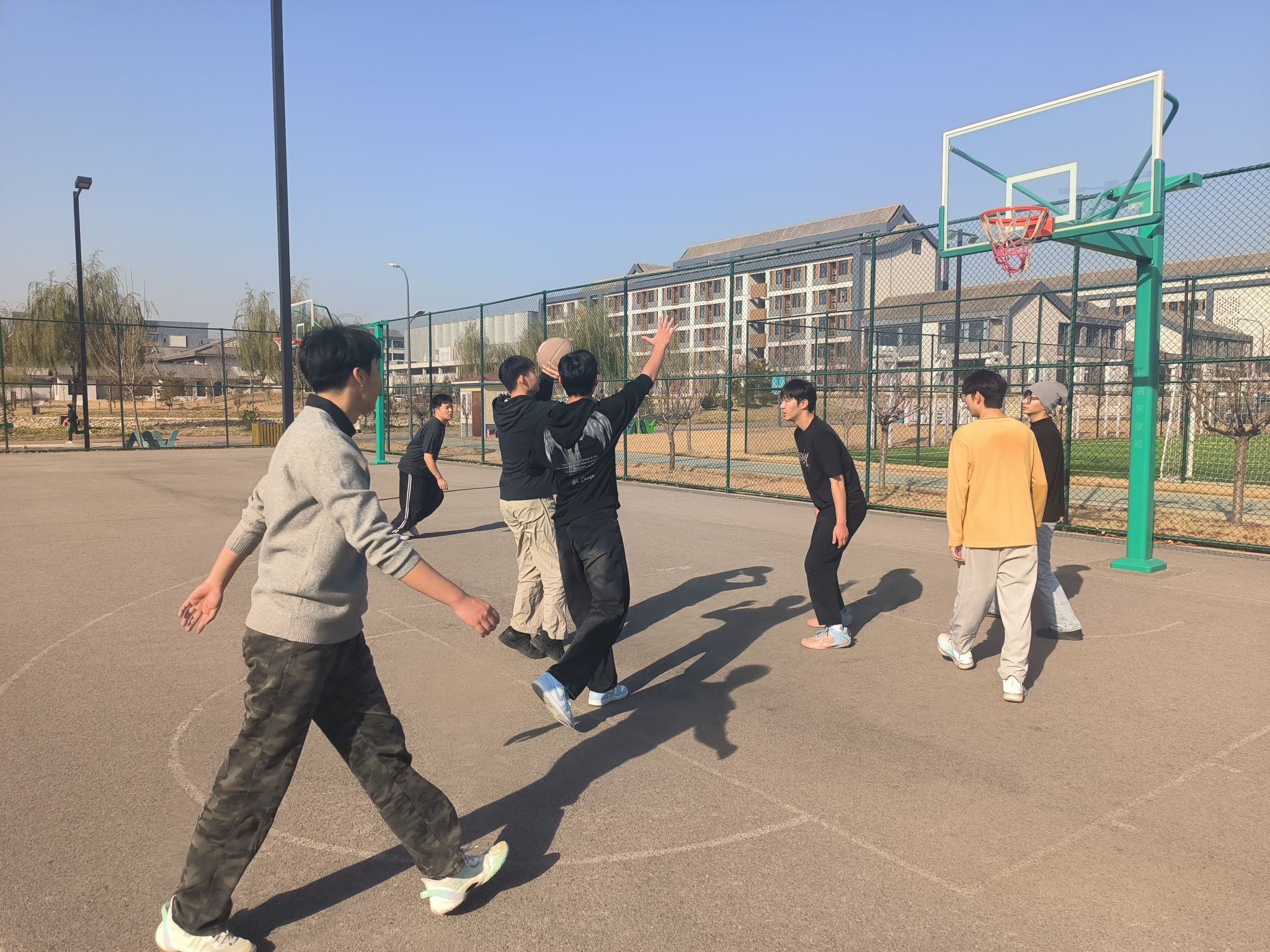 2025年11月26日10:00,大数据学院计算机科学与技术(专升本)25-4班在体育公园篮球场举办“篮”不住的活力——班级篮球活动,由艺体委员张传磊主持,全体同学积极参与,以运动促交流、强凝聚。活动前,张传磊细致讲解规则与安全注意事项,同学们自主分组后,分别开展趣味赛与友谊赛。趣味赛场,“定点投篮”组进球欢呼声不断,“三步上篮”组新手在指导下动作渐趋流畅,氛围热烈;竞技赛场,球员们灵活突破、默契补位、精准传球,攻防转换间喝彩声此起彼伏,拘谨在击掌与打趣中消散,全场沉浸在热血氛围里。活动尾声,同学们不顾满头大汗,依旧热情高涨,勾肩搭背交流互动,陌生感彻底消融。此次活动不仅让大家感受篮球运动的乐趣,更增进了同学间的默契与友谊。未来,班级将持续开展体育活动,培育健康生活态度,让青春活力成为班级底色。